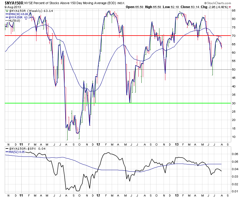 NYSE Percentage of Stocks above their 150 day Moving Averages $NYA150R