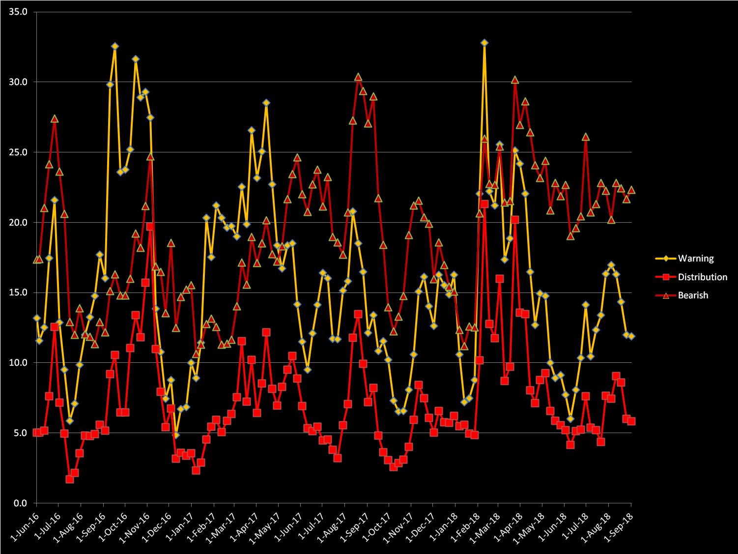 Quick description of the indicator: Sample is the same as for the Survey (2287 stocks). Stock classification is done as per Chuck Dukas's TrendAdvisor Diamond described in his book (see attached TrendAdvisor Diamond). Stocks in bullish, accumulation and recovery phases are considered healthy and cumulatively plotted as an oscillator, same as in the Survey. Those in warning, distribution and bearish phases are considered technically unhealthy.