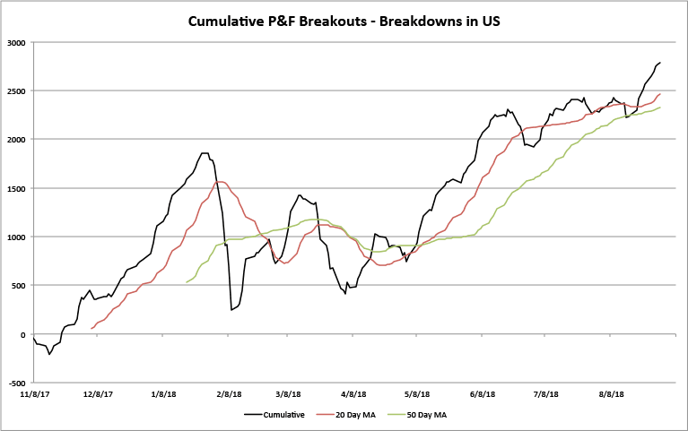 Cumulative P&F Breakouts - Breakdowns custom Breadth charts