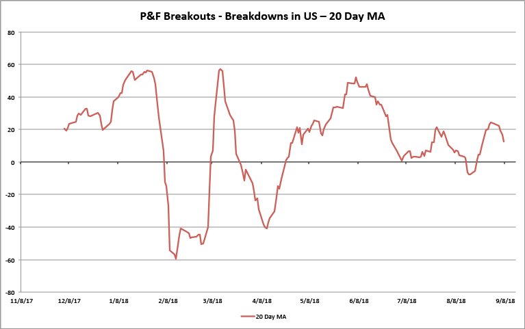 Attached is my updated custom breadth charts that I do based on the daily point and figure double top breakouts and double bottom breakdowns.