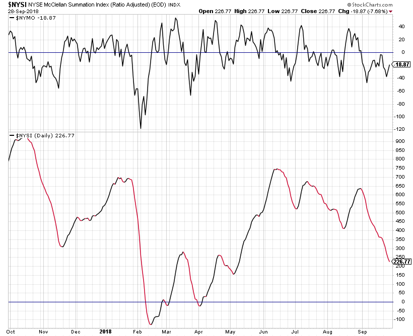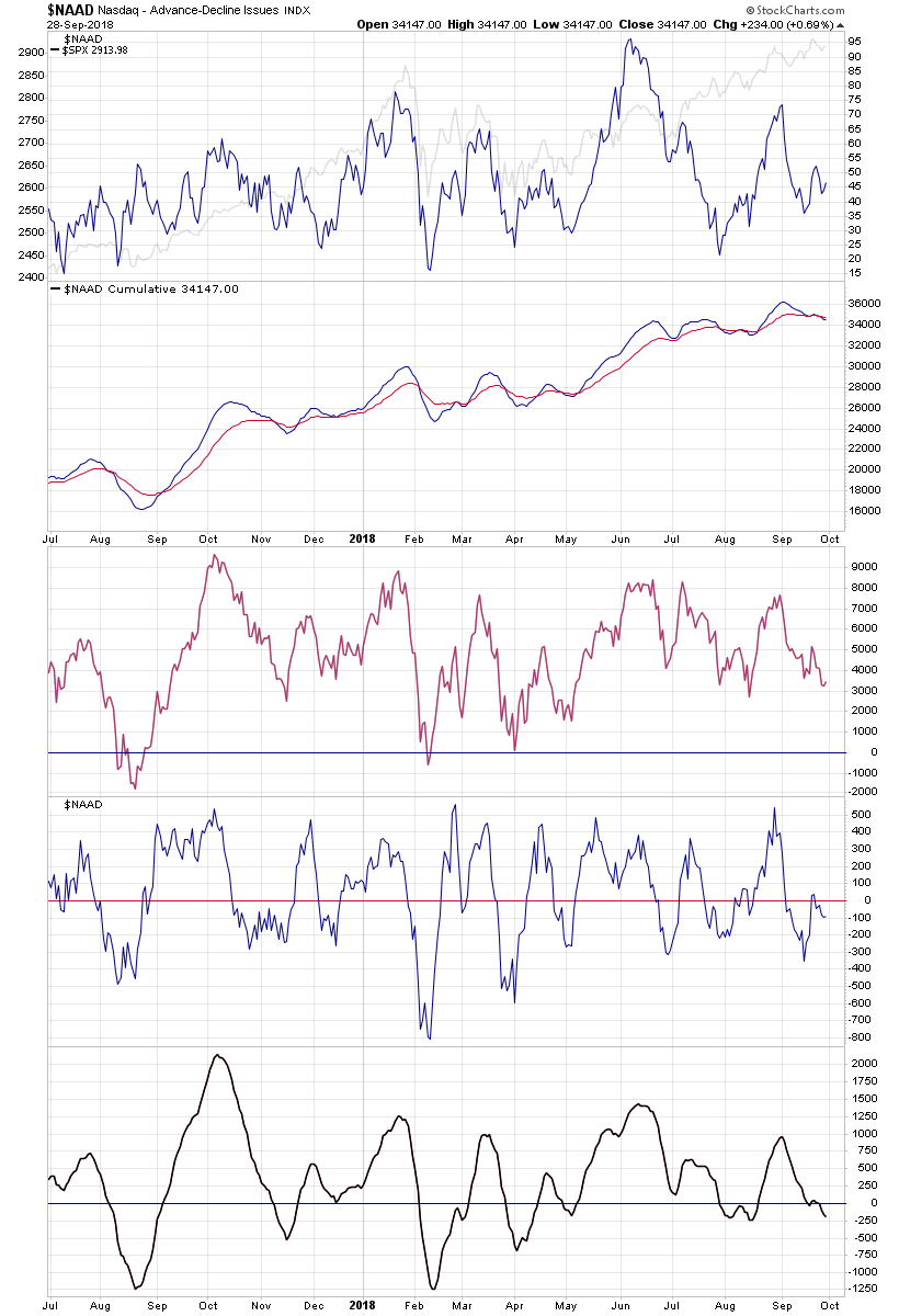 Attached is the updated Advance Decline Breadth Charts, including the cumulative AD line, momentum index, cumulative AD volume line, 10 Day AD oscillator and the McClellan Oscillator and Summation Index.