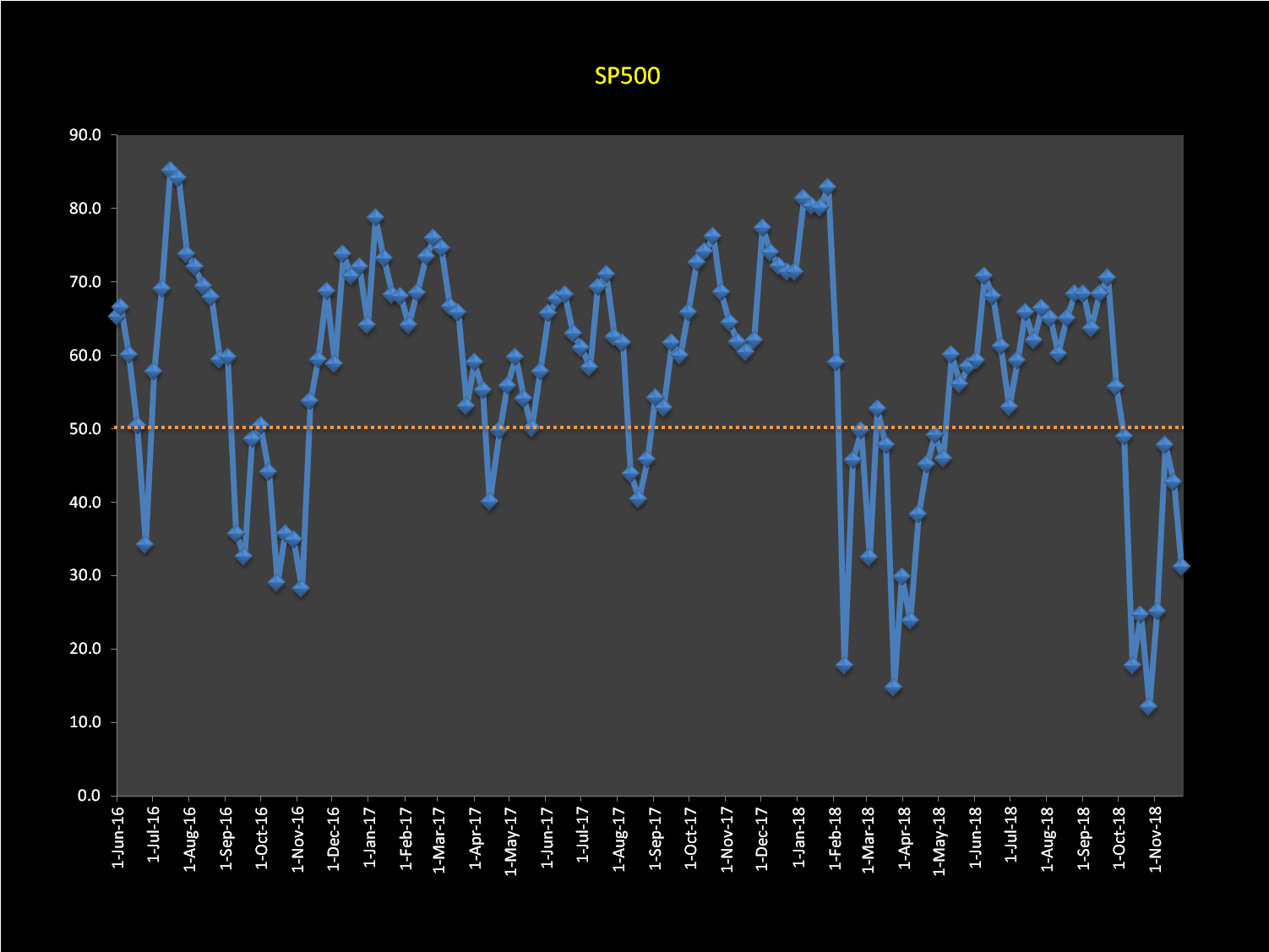 Quick description of the indicator: Sample is the same as for the Survey (2287 stocks). Stock classification is done as per Chuck Dukas's TrendAdvisor Diamond described in his book (see attached TrendAdvisor Diamond). Stocks in bullish, accumulation and recovery phases are considered healthy and cumulatively plotted as an oscillator, same as in the Survey. Those in warning, distribution and bearish phases are considered technically unhealthy.