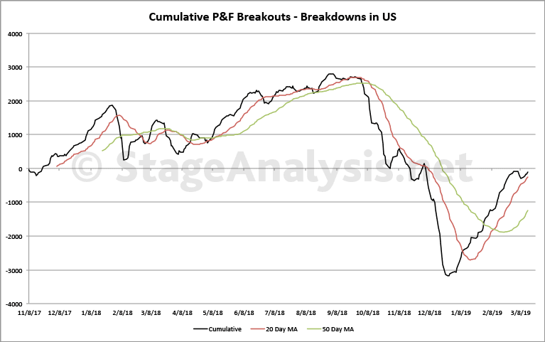 Cumulative P&F Breakouts - Breakdowns custom Breadth charts