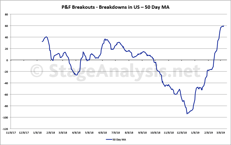 Attached is my updated custom breadth charts that I do based on the daily point and figure double top breakouts and double bottom breakdowns.