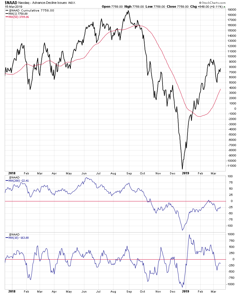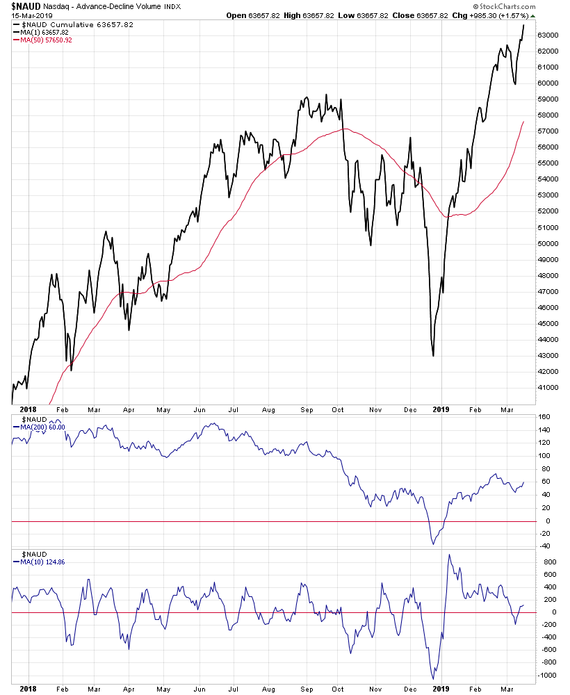 Attached is the updated NYSE and Nasdaq Advance Decline Breadth Charts, including the cumulative AD line, momentum index, cumulative AD volume line, 10 Day AD oscillator and the McClellan Oscillator and Summation Index.