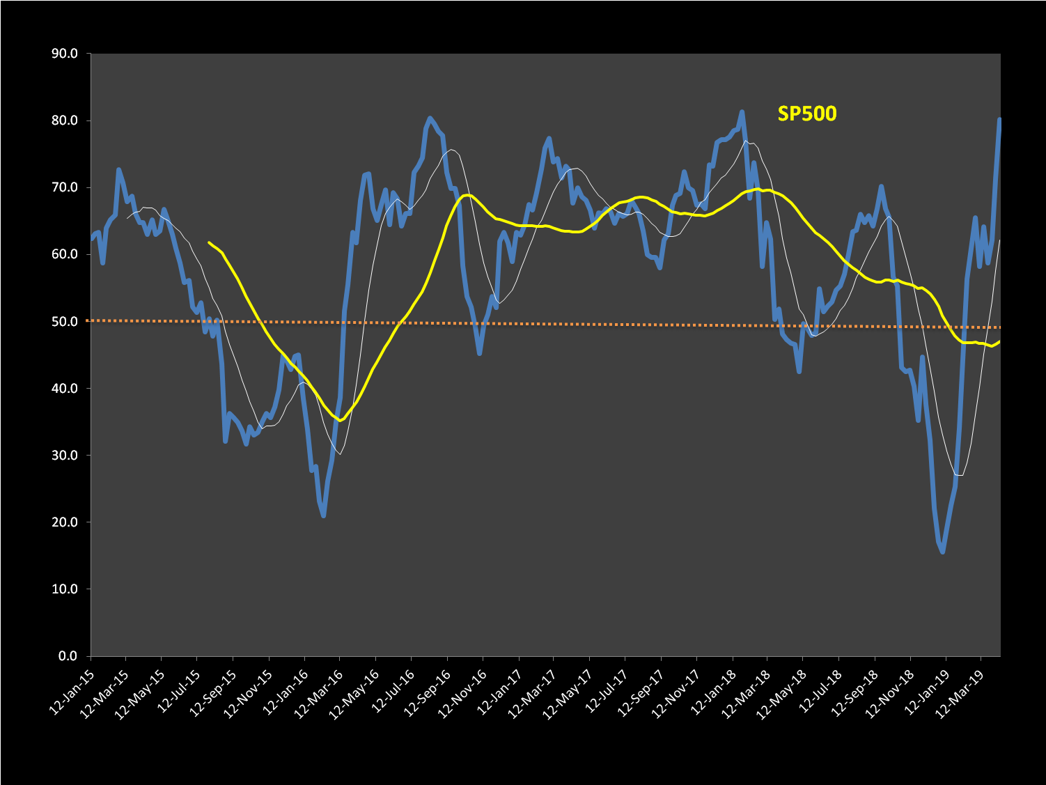 Note: The cumulative line clearly moved back above its recent highs this week, and so is back to a risk on signal by this breadth measure.