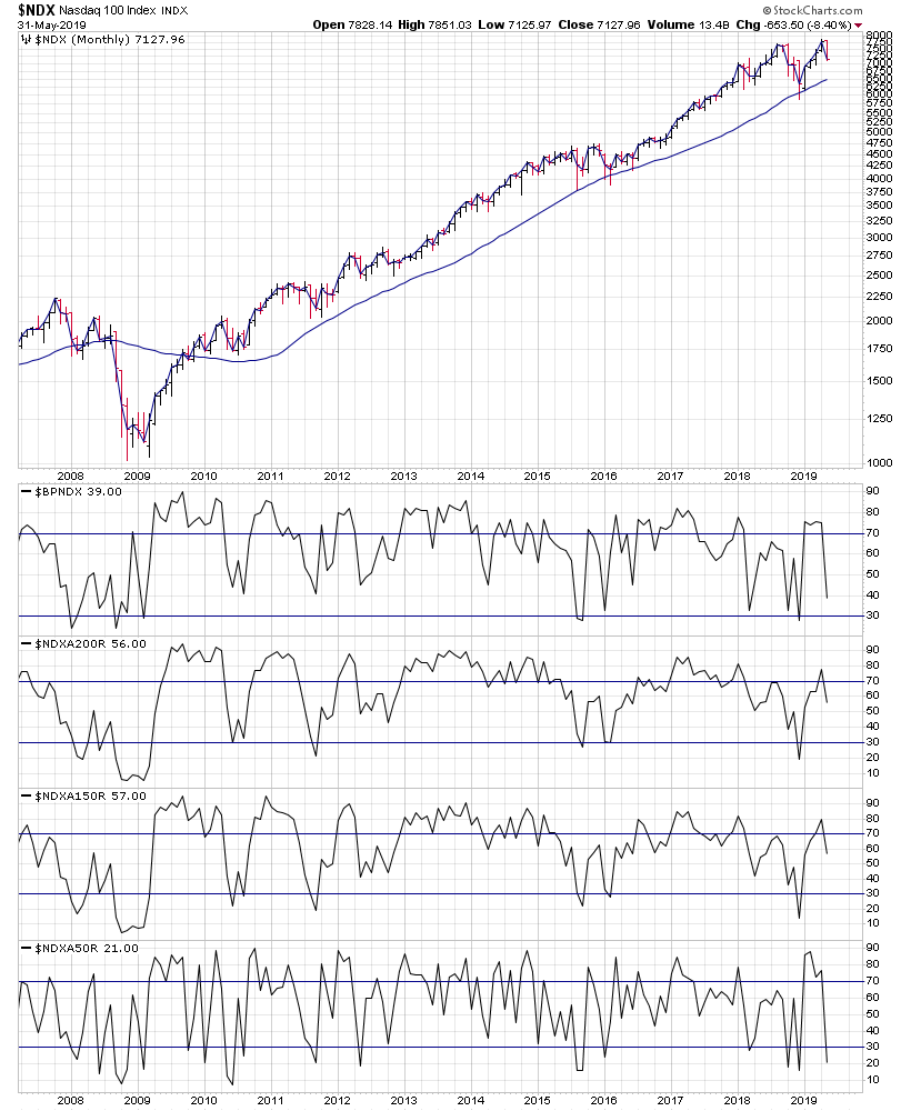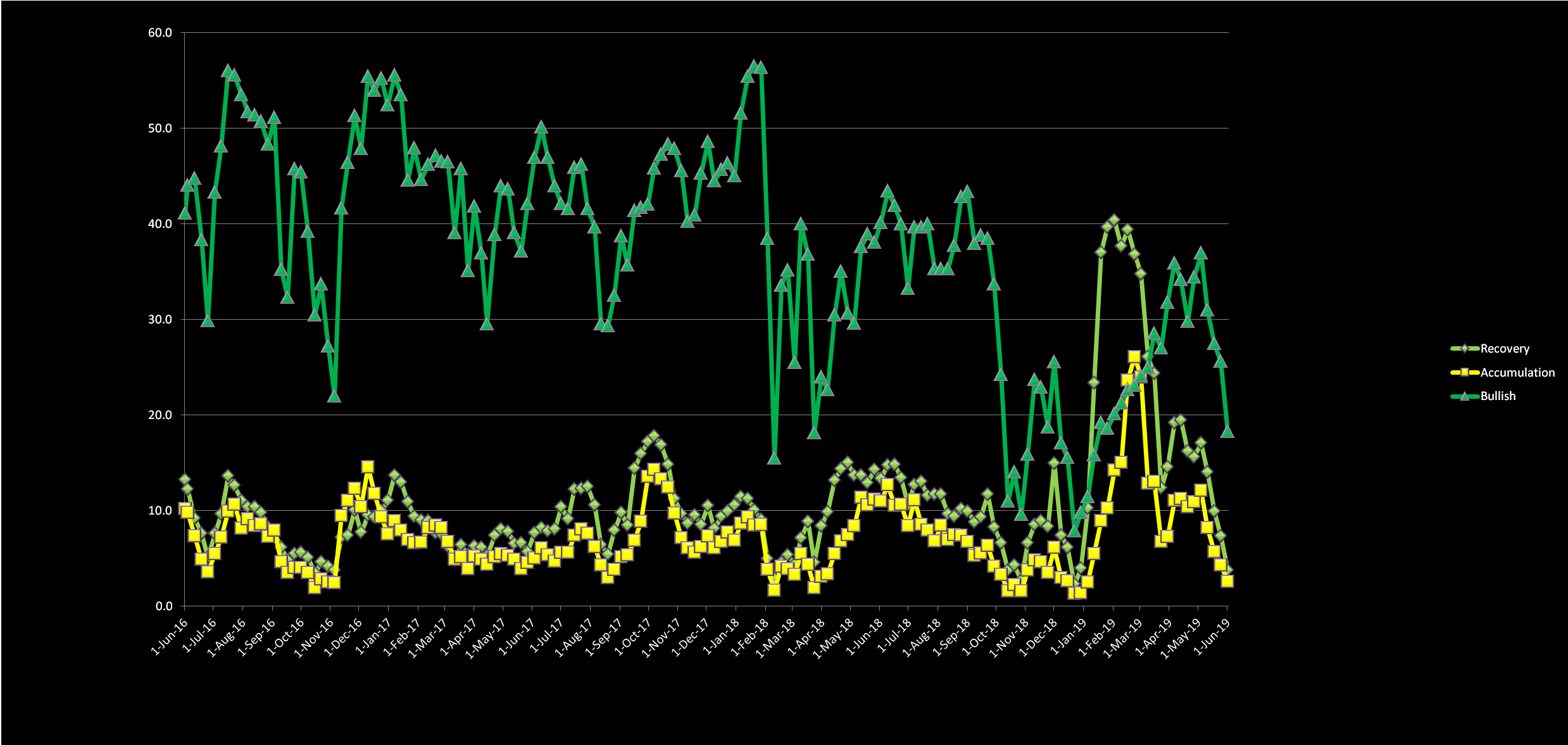 (2019-06-01, 02:28 PM)isatrader Wrote: Note: Looking at the recent past on these monthly charts. I'm seeing a similar pattern to early 2012 in this years price action and the moving average breadth indicators levels so far