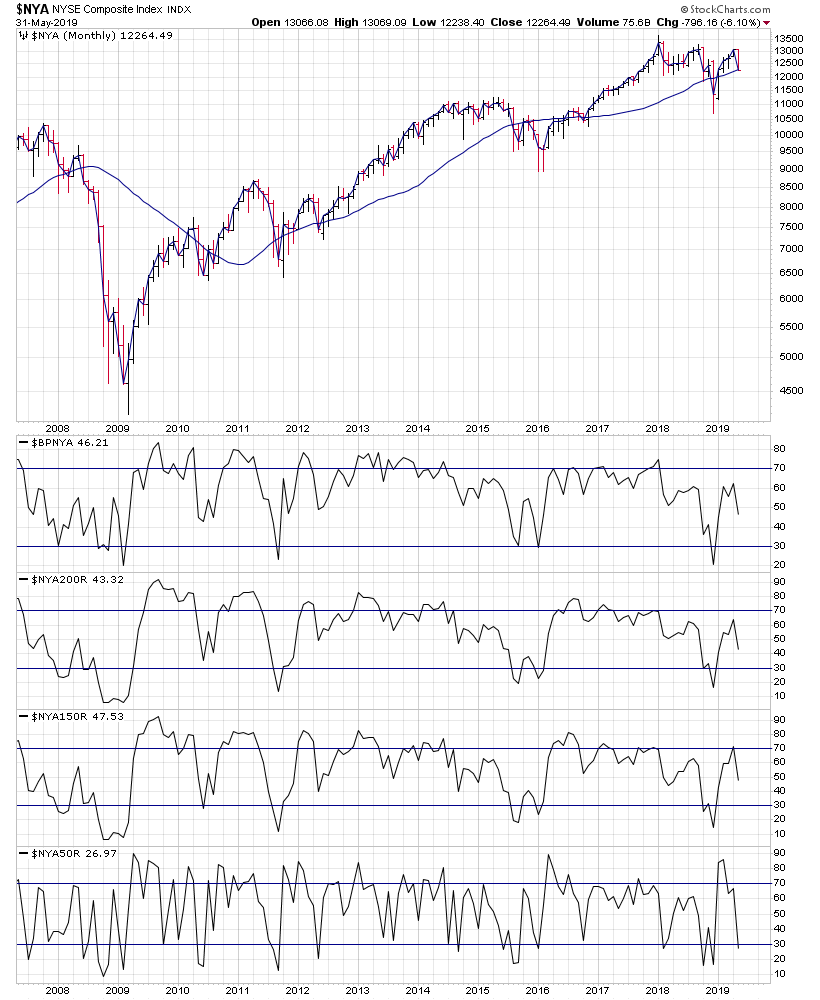(2019-06-01, 02:28 PM)isatrader Wrote: Note: Looking at the recent past on these monthly charts. I'm seeing a similar pattern to early 2012 in this years price action and the moving average breadth indicators levels so far