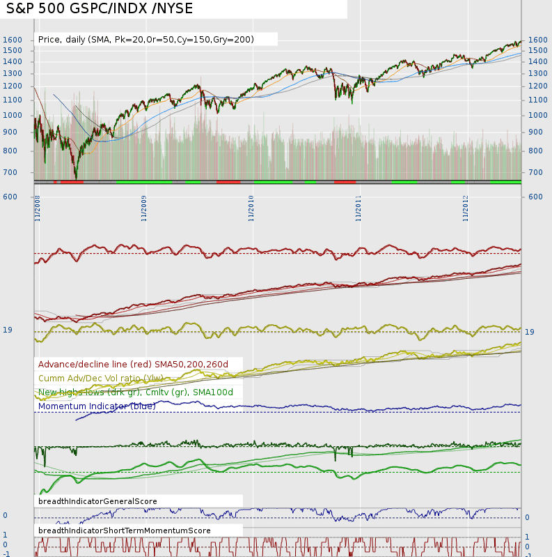 Although the same could be said for my breadth scores the price and its moving averages are a lot weaker.