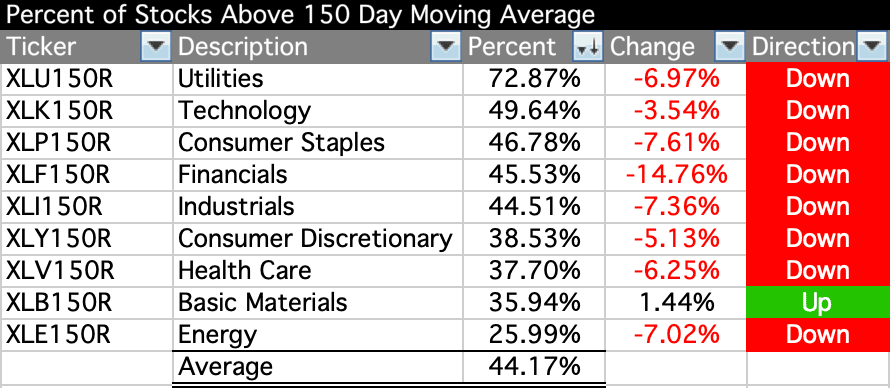 US Sectors - Percent of Stocks Above their 150 Day Moving Average