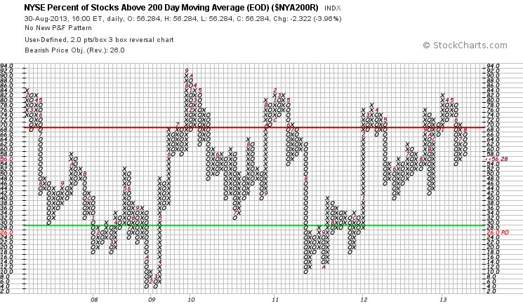 NYSE Percentage of Stocks above their 200 Day, 150 Day and 50 Day Moving Averages P&F charts