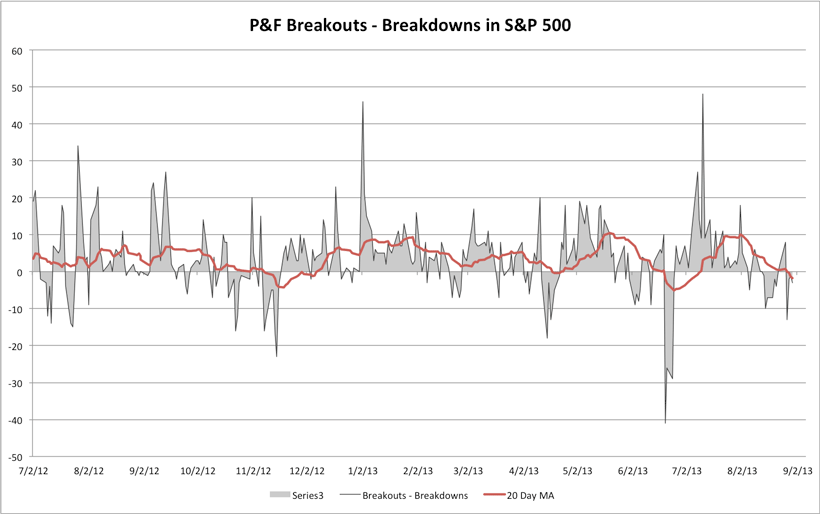S&P 500 Cumulative P&F Breakouts - Breakdowns