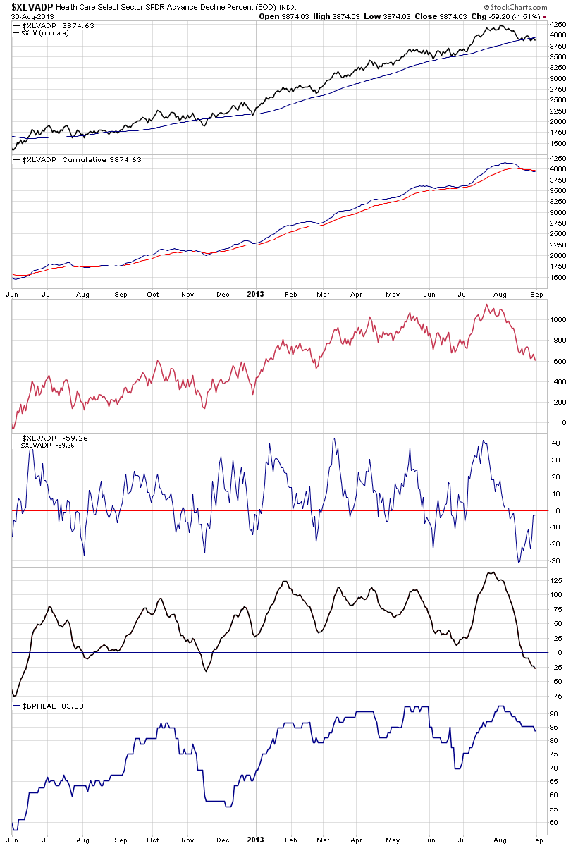 To go into even more depth on the individual sectors, attached is a number of different measures based around the advance decline data for each major sector. Below is the charts: