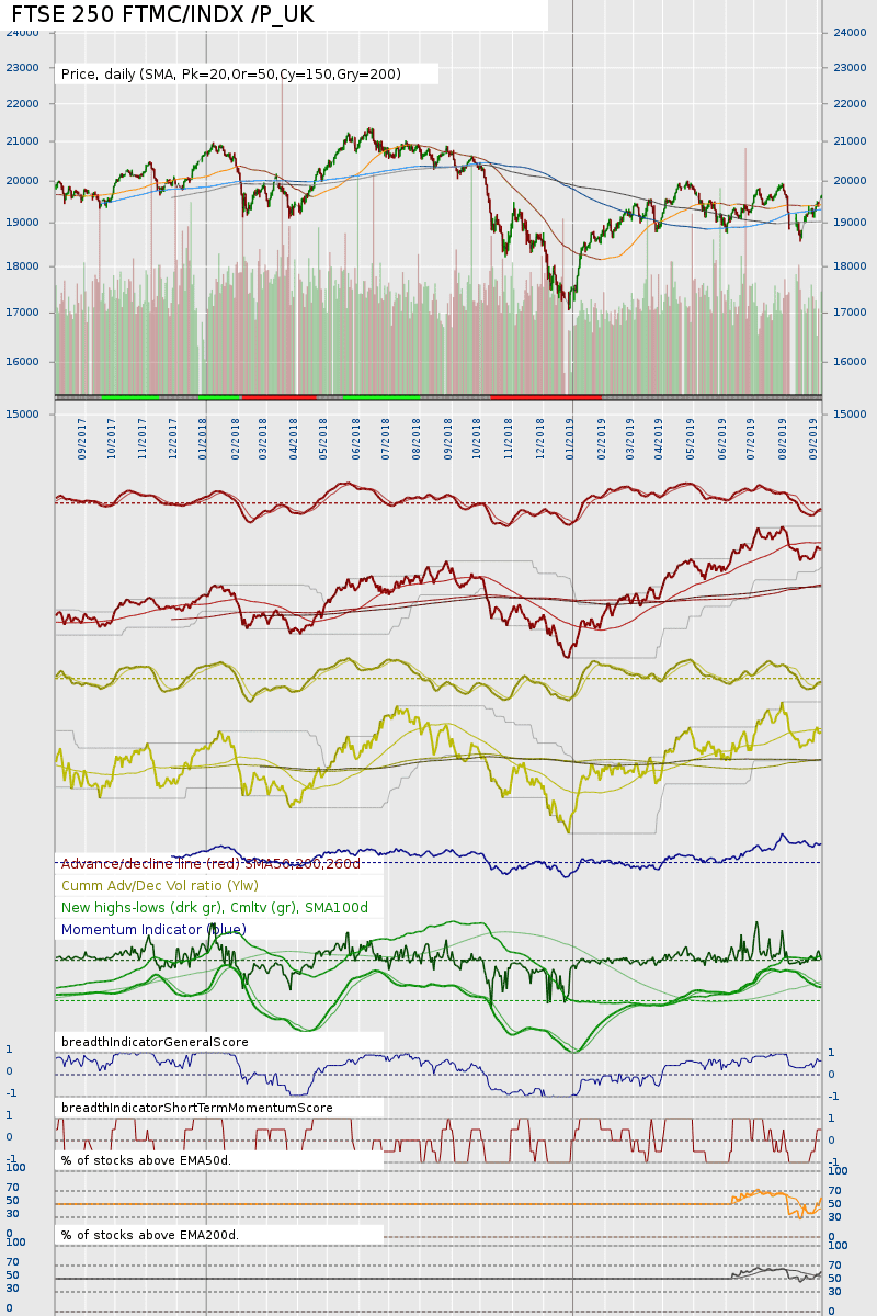 Interesting to see the recent strengthening, with, for NYSE data, the advance / decline and advance / declining volume lines moving up, nmew highs minus new lows being posative, % above 50 day and 200 day EMAs being near 50%.  However, I presume price could bounce off the recent high of around 3026..