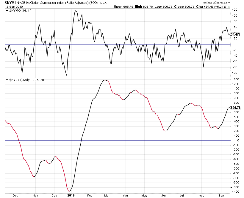 Attached is the updated NYSE and Nasdaq Advance Decline Breadth Charts, including the cumulative AD line, momentum index, cumulative AD volume line, 10 Day AD oscillator and the McClellan Oscillator and Summation Index.