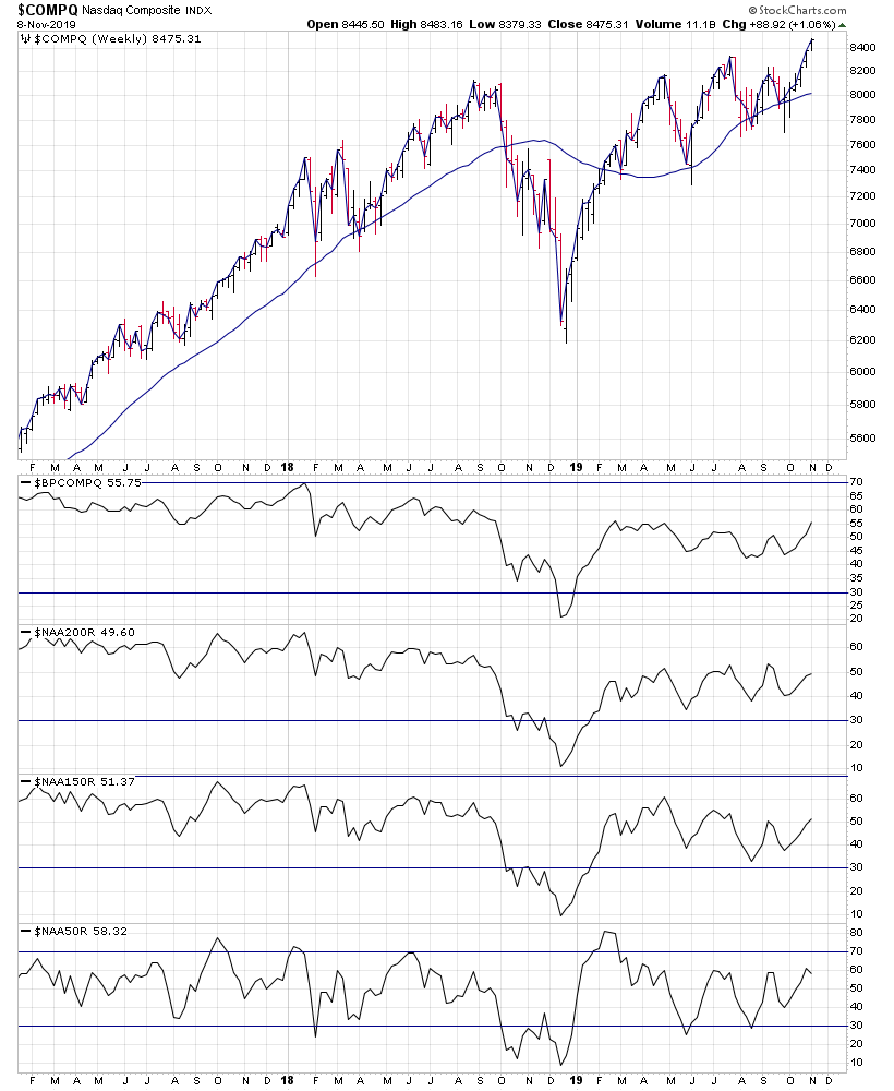 Major US Stock Indexes Update - NYSE, Nasdaq, S&P 500, Nasdaq 100, DJIA & S&P 600Here are the weekly overview charts of the NYSE, Nasdaq, S&P 500, DJIA & S&P 600 small caps with their US Bullish Percent and Moving Average Breadth.