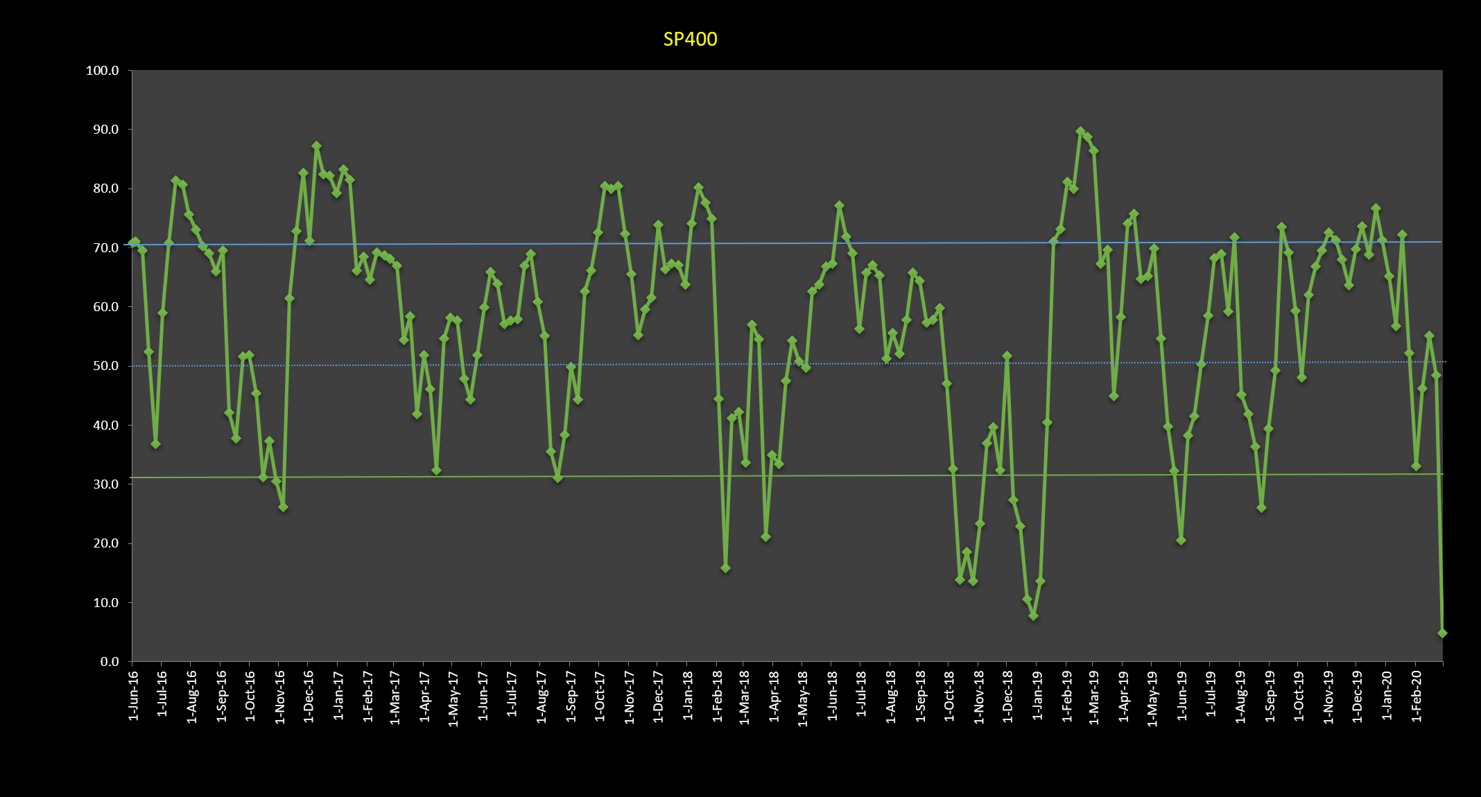 (2020-03-01, 05:19 PM)pcabc Wrote: Regarding the bullish % or % stocks above their MAs.  Though you talks about weight of evidence you seem to pay particular heed to these?   If so, are you suggesting that if above 70% or below 30% then these indicators should be given more consideration to than other indicators?