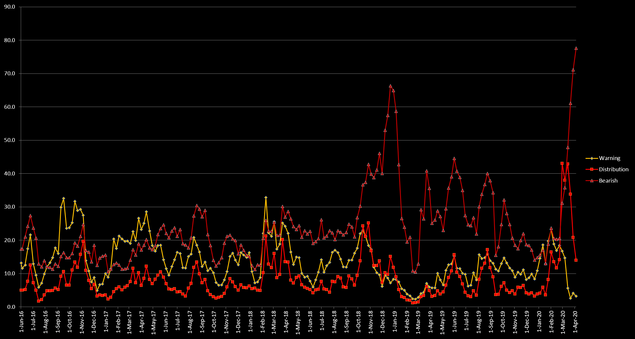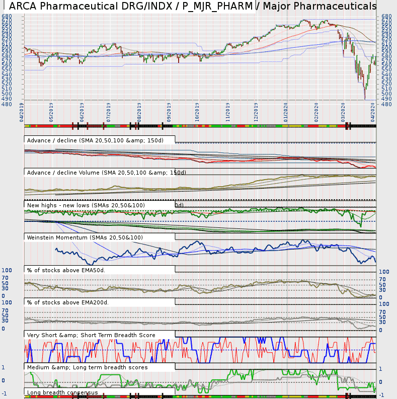 Fate does not always let you fix the tuition fee. She delivers the educational wallop and presents her own bill - Reminiscences of a Stock Operator. RE: Stan Weinstein's Stage Analysis and Market Breadth - Technical Analysis(2020-04-02, 09:41 PM)isatrader Wrote:(2020-04-02, 09:26 PM)pcabc Wrote: Another batch with strong relative strength Isa, apologies. I get rather carried away. If that is not obvious. If it helps they perhaps could be moved or removed if it confuses the issue. Anyway, moving on... The most obvious theme is major biotechs pharmaceuticals and biotechnology. That barely need stating, I would think. However, I calculate my own breadth data, and I look at this area. But desipte stunning moves I see not hint in the breadth for either. This is most odd. Similar in healthcare. I make no claim that my calculations are perfect, but they should give some approximation. I wonder if I am drilling down into the wrong area? I will investigate. The breadth for gold miners is improving. A/D is still at lows. A/D volume is flattish after an increase. I wonder if I have an upward bias in my a/d volume calculations, but I cannot track one down. The main improvements are that new highs minus new lows are around zero having increased from the negative zone and the percentages of stocks above the 50 and 200 day EMAs are about to leave the oversold area perhaps. Other than this it looks pretty bleak for all the US sectors. So I need to see if I have anomalies, perhaps recalculate my numbers and see if I can drill into very specific areas. RE: Stan Weinstein's Stage Analysis and Market Breadth - Technical AnalysisSectors that are showing up, based on momentum Code: Tag (sector etc) , No., % of tags RE: Stan Weinstein's Stage Analysis and Market Breadth - Technical AnalysisAttached are the updated charts of the RABWDB Indicator, Individual Phases, SP500 RABWDB, SP400 RABWDB and SP600 RABWDB. RE: Stan Weinstein's Stage Analysis and Market Breadth - Technical AnalysisAttached are the updated charts of the US Stock Market Survey Indicator, Individual Stages, SP500 Survey, SP400 Survey and SP600 Survey. RE: Stan Weinstein's Stage Analysis and Market Breadth - Technical Analysis(2020-04-05, 09:50 AM)grbaNT Wrote: Attached are the updated charts of the US Stock Market Survey Indicator, Individual Stages, SP500 Survey, SP400 Survey and SP600 Survey. Thanks for this, as always, appreciated. Can you clarify a little? Volatility dropped somewhat last week and if that continues in the coming weeks, maybe we will see individual stocks creating patterns and, generally, we can begin to trade on technicals after a lengthy period where market environment was good only for day trades. Regarding 'only good for day trades', do you mean the lengthy period up and including February or the March decline? Anyway, of volatility becomes more sensible we will better know where we are. |
