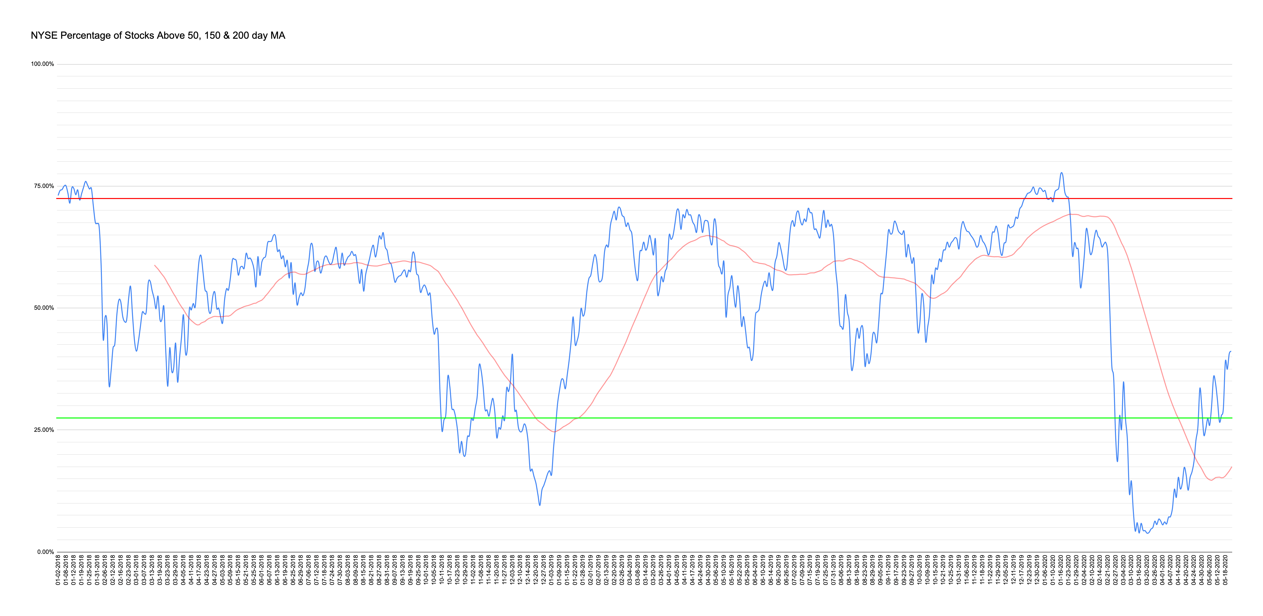 NYSE Percentage of Stocks Above 50, 150 and 200 Day Moving Average Chart