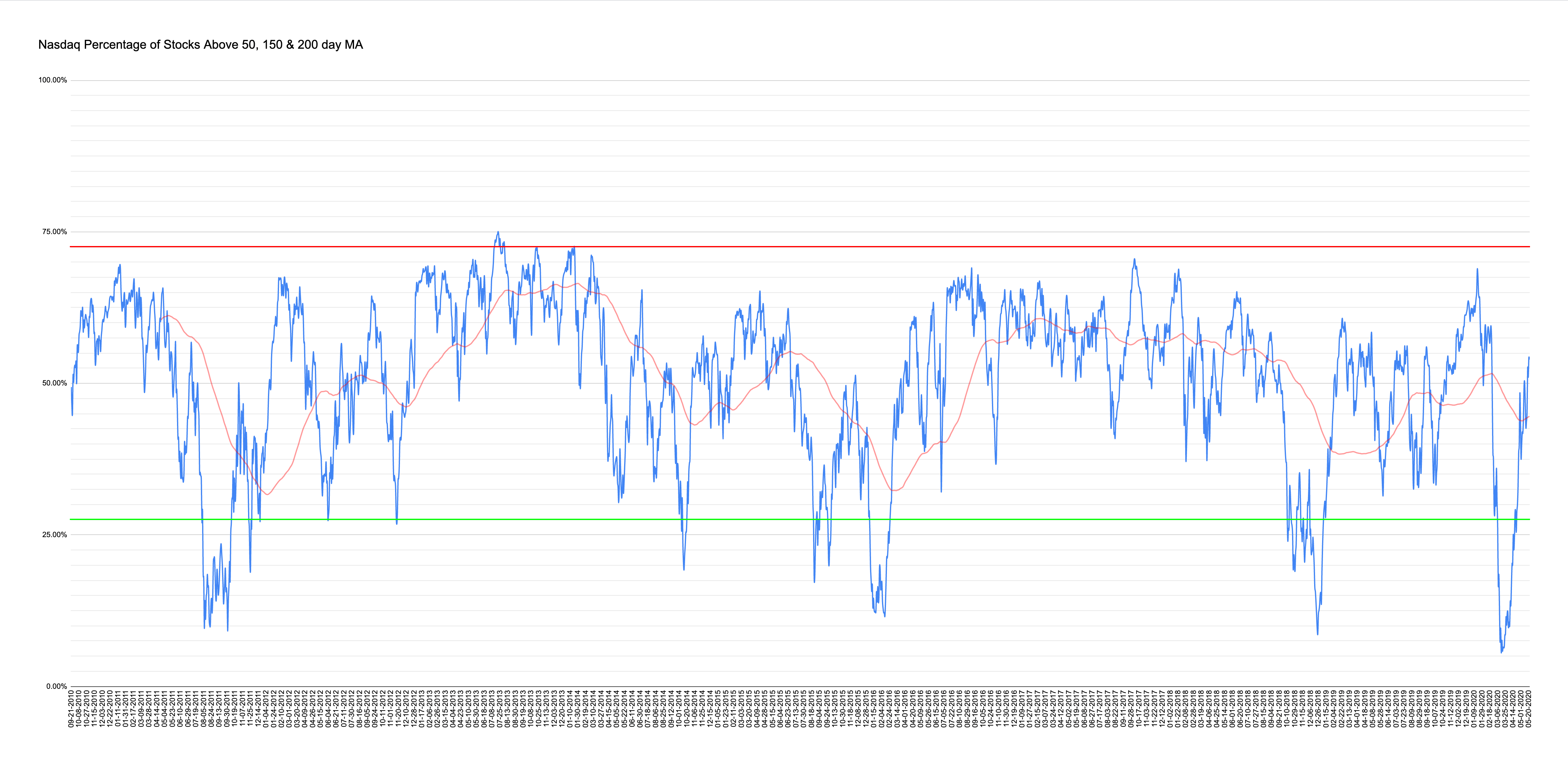 And I've done the same on the Nasdaq, and the current reading is 53.93%