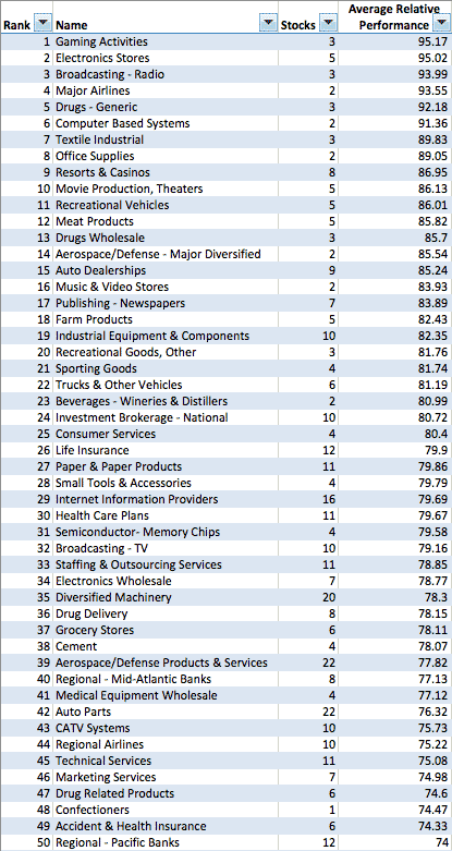 To order the list by the Average Relative Strength of each sector you need to select the drop down menu called "Order by" and select Average Relative Strength (DESC).