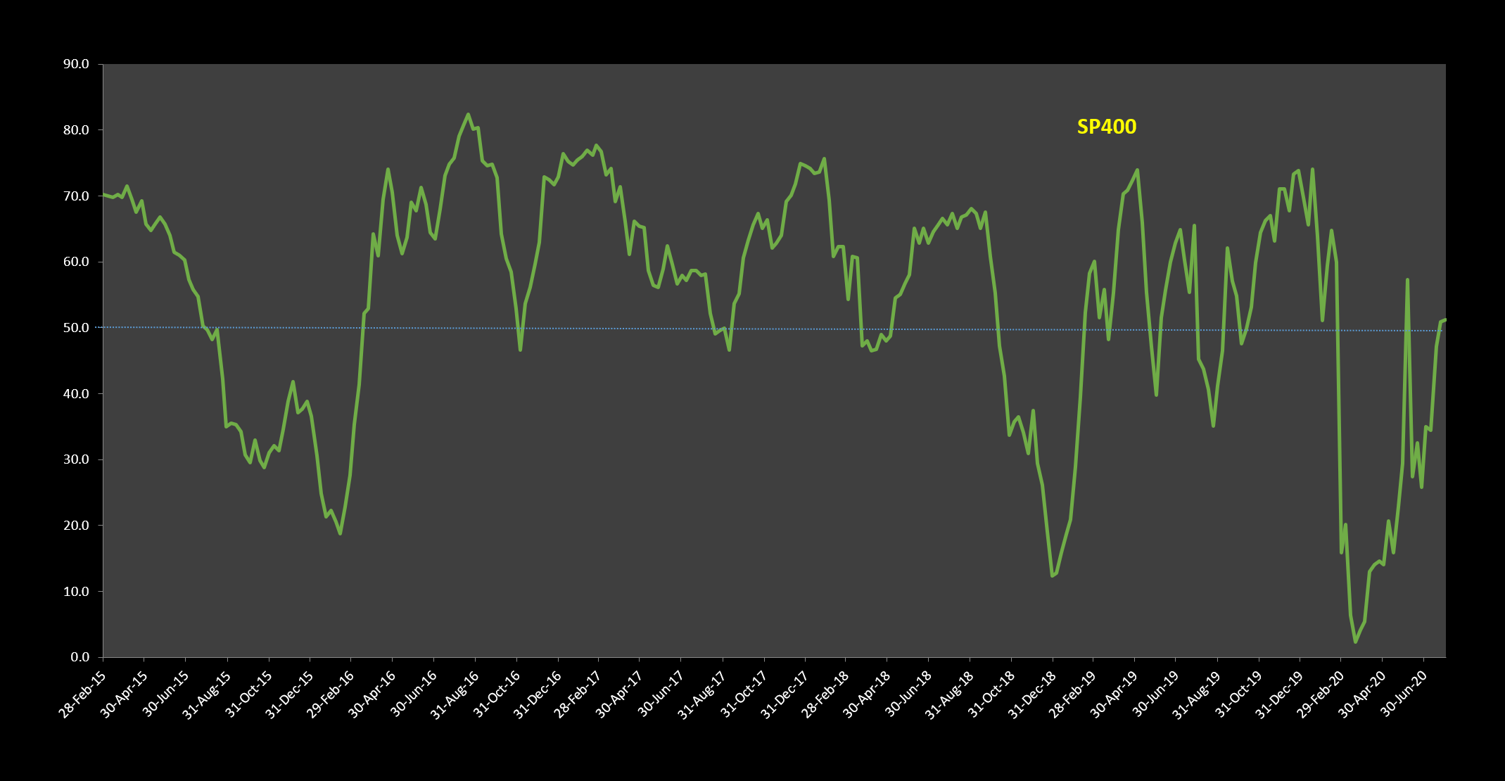 As far as backtesting. No, but from the 20 year chart I can see that my normal ranges that I use on the 150 day MA sector breadth work just the same. i.e. Above 60% - Stage 2, Below 40% - Stage 4, and 40% to 60% range is Stages 1 or 3