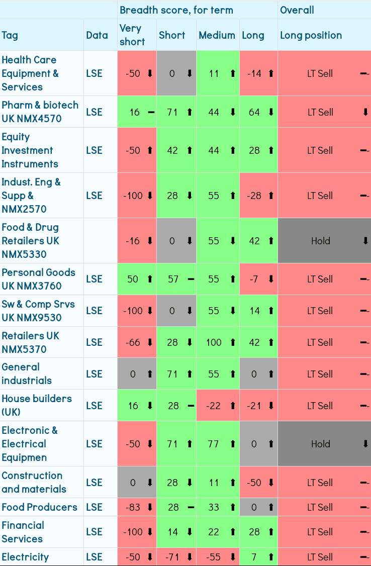 RE: Stan Weinstein's Stage Analysis and Market Breadth - Technical Analysis(2020-08-16, 01:15 PM)pcabc Wrote: Sector breadthI had a couple of ques. re your sector breadth bar chart: - is this something you are putting together or does a service publish these weekly? - I'm confused how to read it. For ex., industrials has a green long score, but it also has a LT sell red long position. That seems in contradiction. Why do they conflict when they are both long views? - I'm also confused about healthcare. It got a very short & long run green breadth scrore. yet short & medium are red. Does that mean its a buy now & looks good long but riskier in a medium hold? - on the momentum table, for the tech spdr etf what does the 70 fifty MA mean vs a 44 one hundred fifty MA mean % wise? These are probably dumb questions, but I'm very interested in measuring and trying to time sectors. So this interests me a lot. any help would be appreciate, thanks. |
