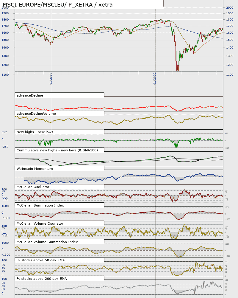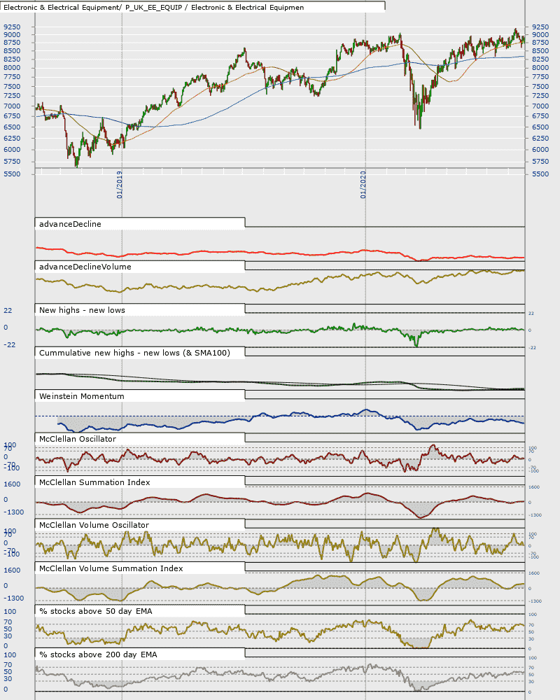 Looking at last night's data I've had similar warnings about deteriorating breadth from MSCI Europe versus XETRA and the UK construction and materials sector.  A bit of a mixed bag though as breadth on the NASDAQ 100 and its breadth (on the top 100 companies, so limited) is positive, as is silver, US Tech sector, UK Equity investment instruments and UK Electronic and Electrical Engineers.  Caution needed with that last one owing to it being based on very few companies.