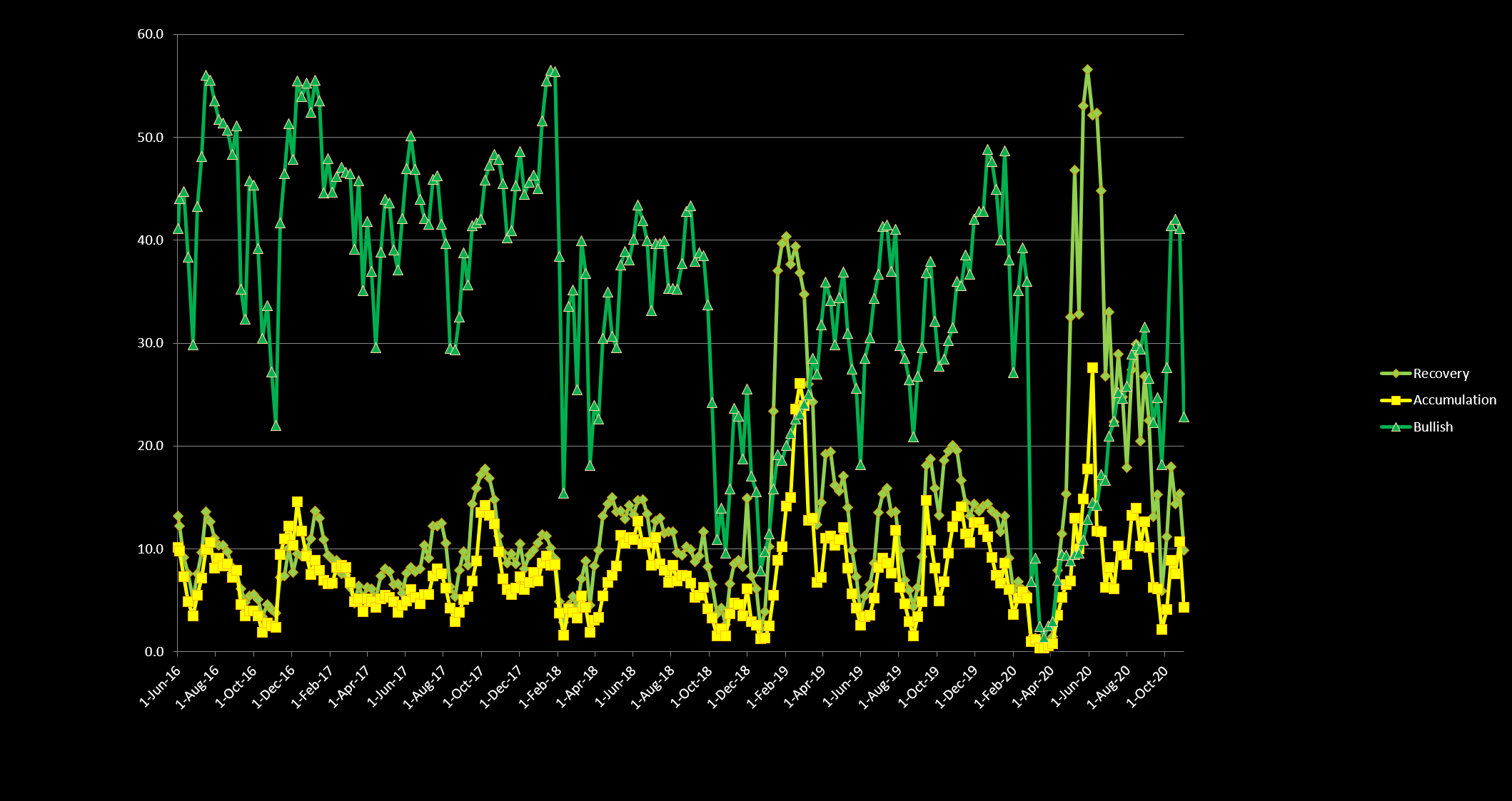 Attached are the updated charts of the US Stock Market Survey Indicator, Individual Stages, SP500 Survey, SP400 Survey and SP600 Survey.