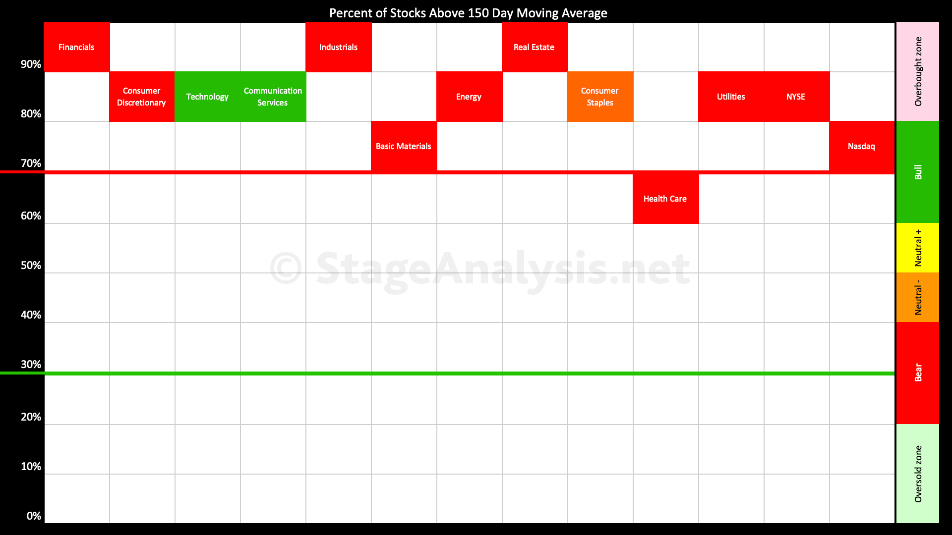 US Sectors: Percent of Stocks Above 150 Day Moving Averages