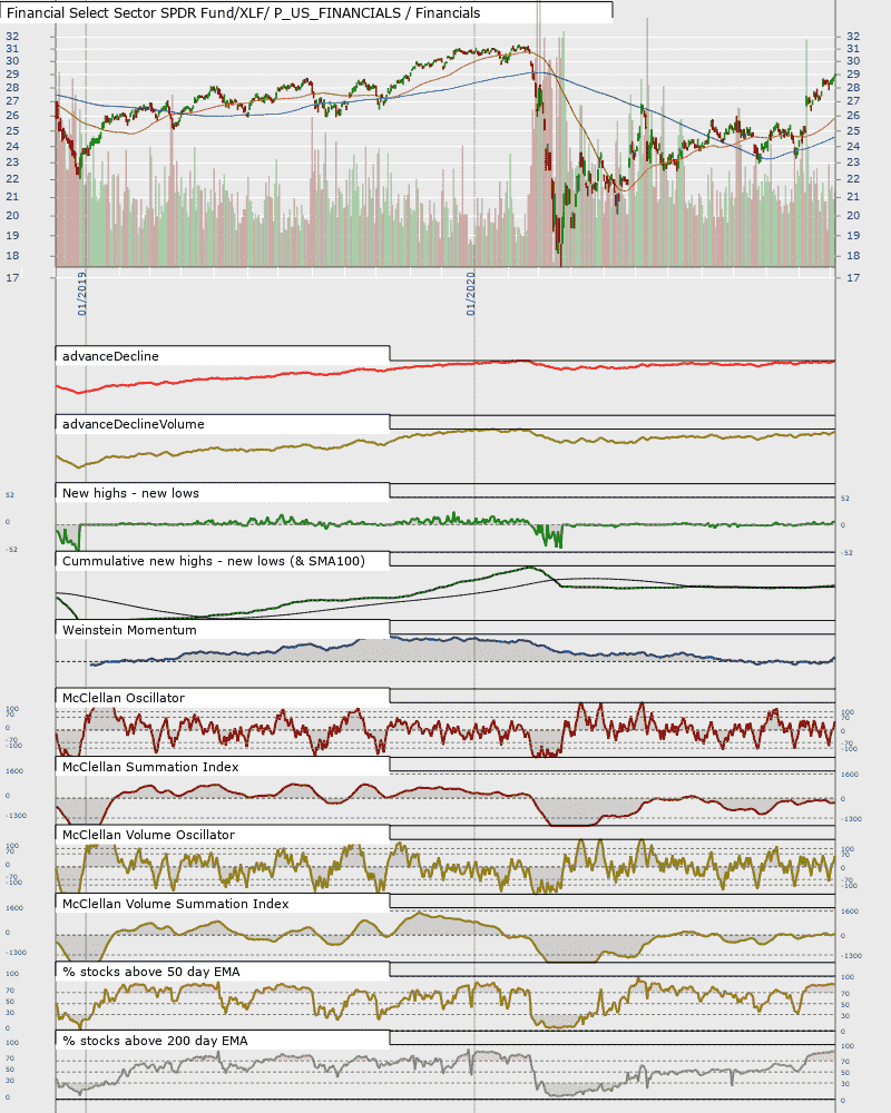 A little care is needed with financials, as it has broken out but looks like it is at the resistance point for Feb 2020 highs.