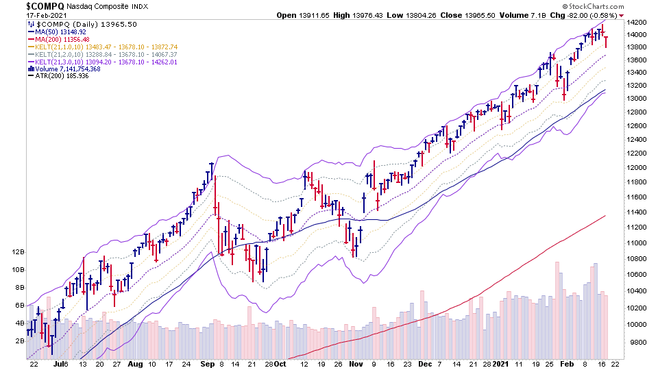 Nasdaq also remains in a steady uptrend and is not extended from its normal 3x ATR(21 day) range