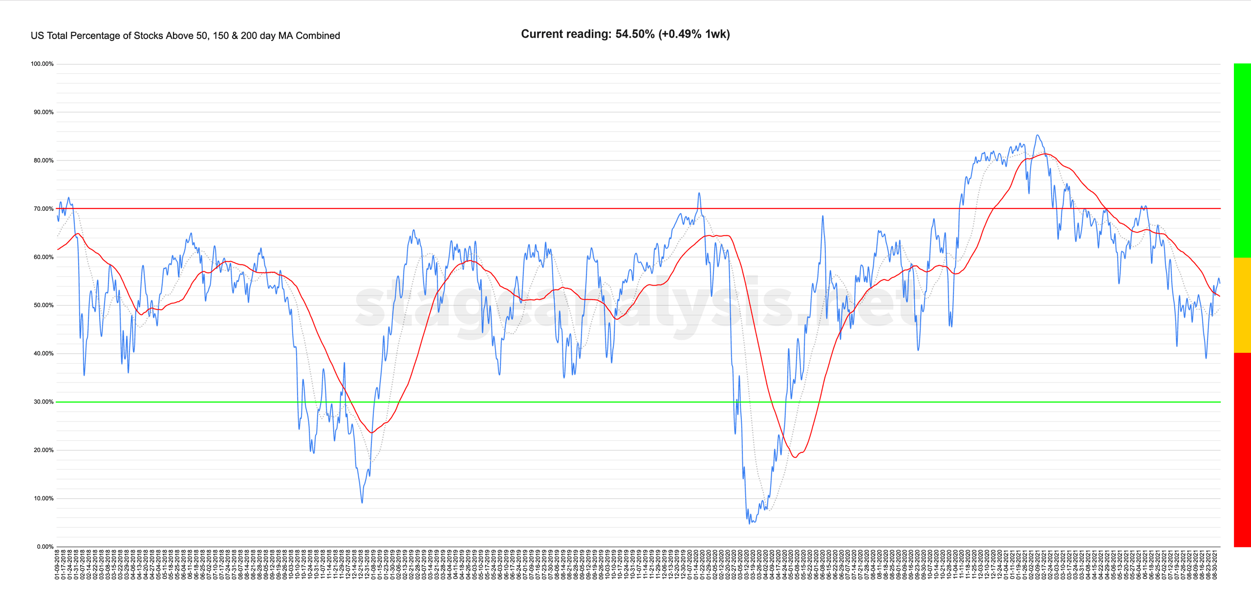 RE: Stan Weinstein's Stage Analysis and Market Breadth - Technical AnalysisBreadth overview RE: Stan Weinstein's Stage Analysis and Market Breadth - Technical AnalysisPercentage of Stocks Above their 50 Day, 150 Day & 200 Day Moving Averages CombinedUS Total % Stocks Above their 50 Day, 150 Day & 200 Day Moving Averages Combined