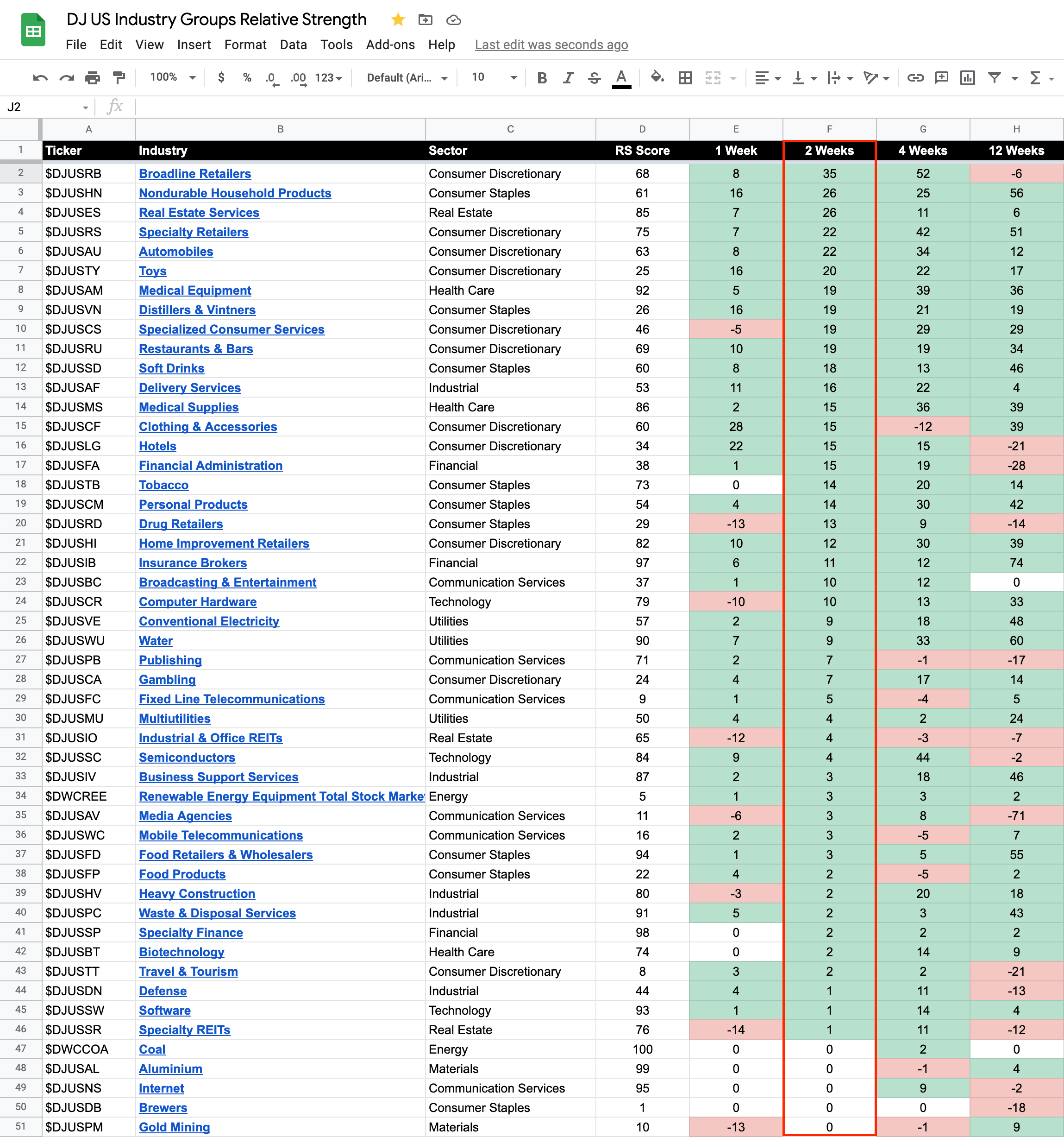 RE: 104 Dow Jones Industry Groups sorted by Relative Strength