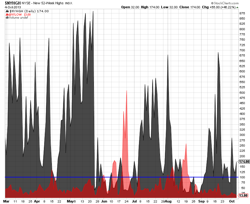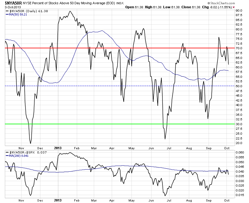 NYSE Percentage of Stocks above their 50 day MA - status change