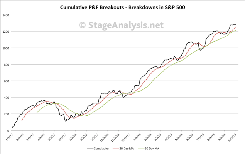 S&P 500 Cumulative P&F Breakouts - Breakdowns