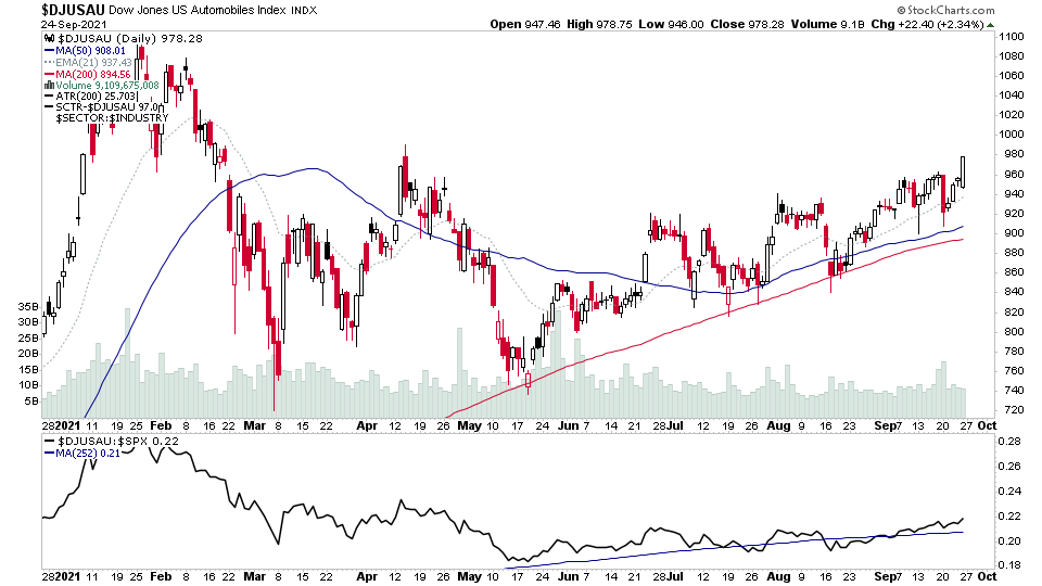 Of note is $DJUSAU Automobiles, which is up another 9 RS points this week to 4th place overall now based on the strength in $TSLA this week and a few smaller names in the group like $LCID