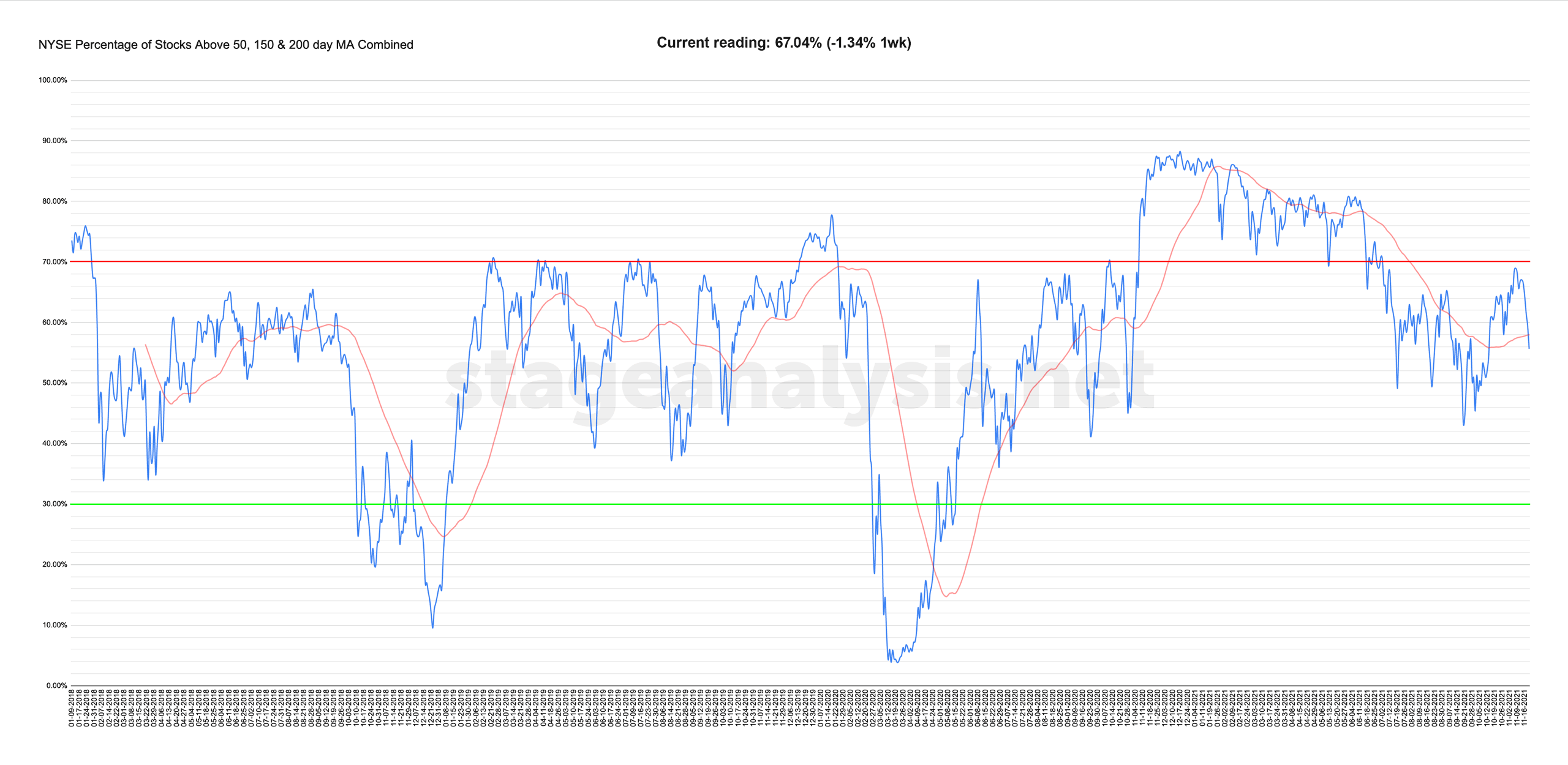 NYSE Total % Stocks Above their 50 Day, 150 Day & 200 Day Moving Averages Combined