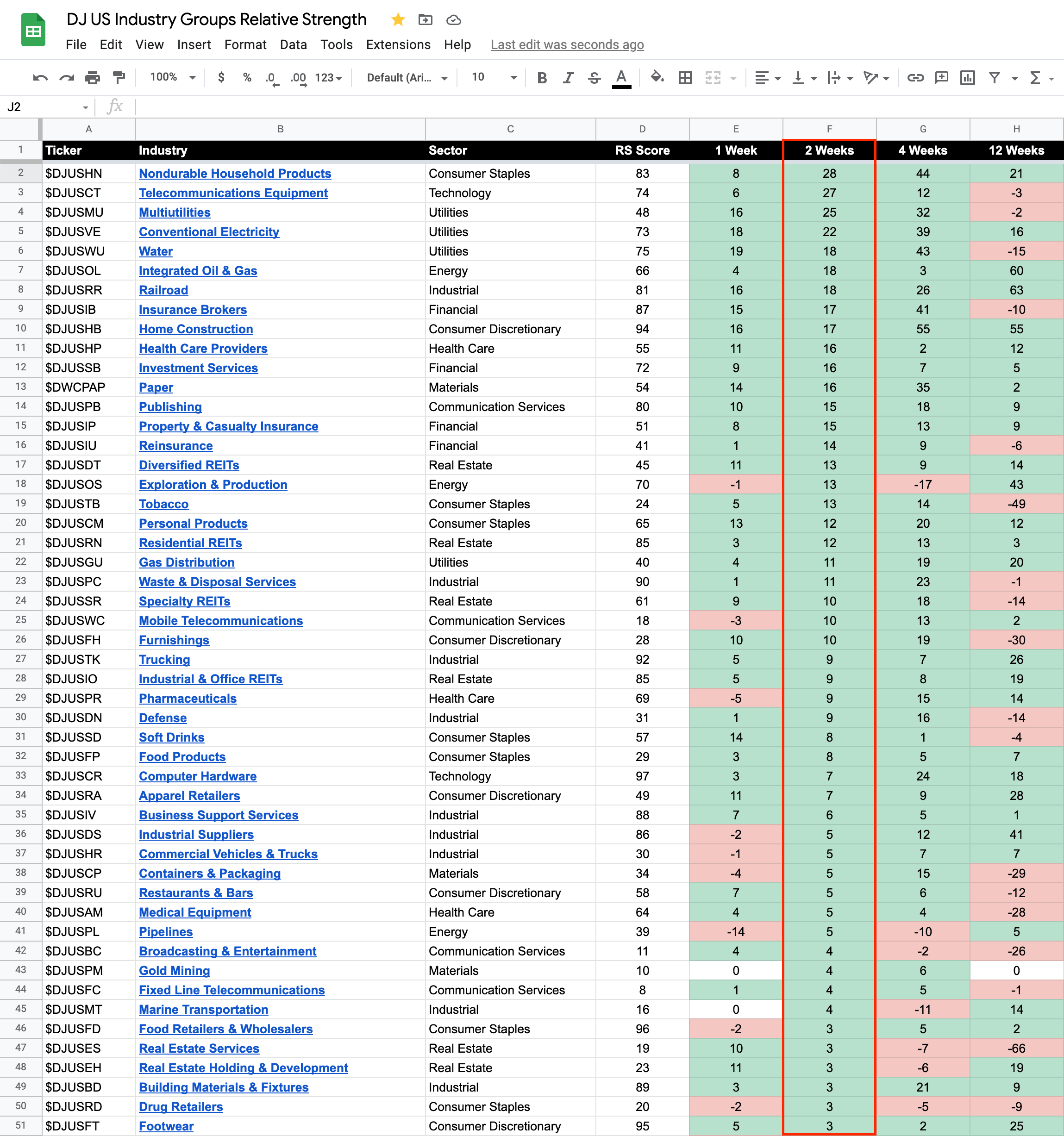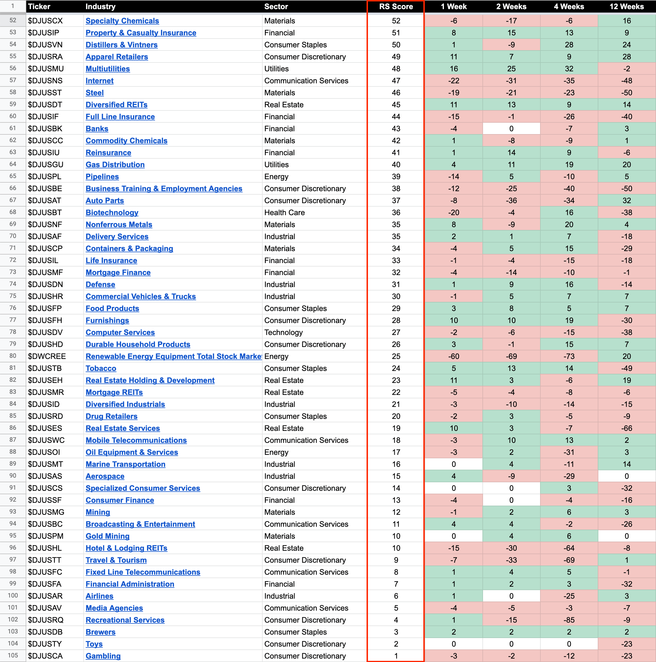 104 Dow Jones Industry Groups sorted by Relative Strength