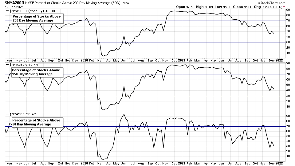 NYSE Total % Stocks Above their 50 Day, 150 Day & 200 Day Moving Averages Combined