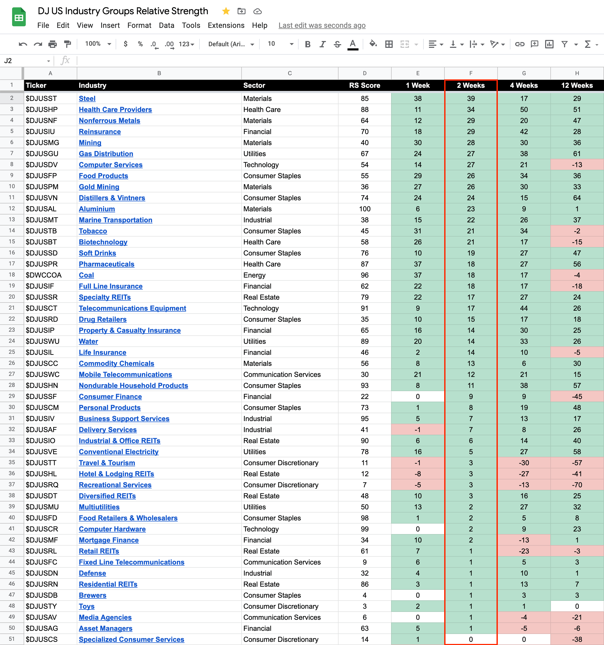 104 Dow Jones Industry Groups sorted by Relative Strength