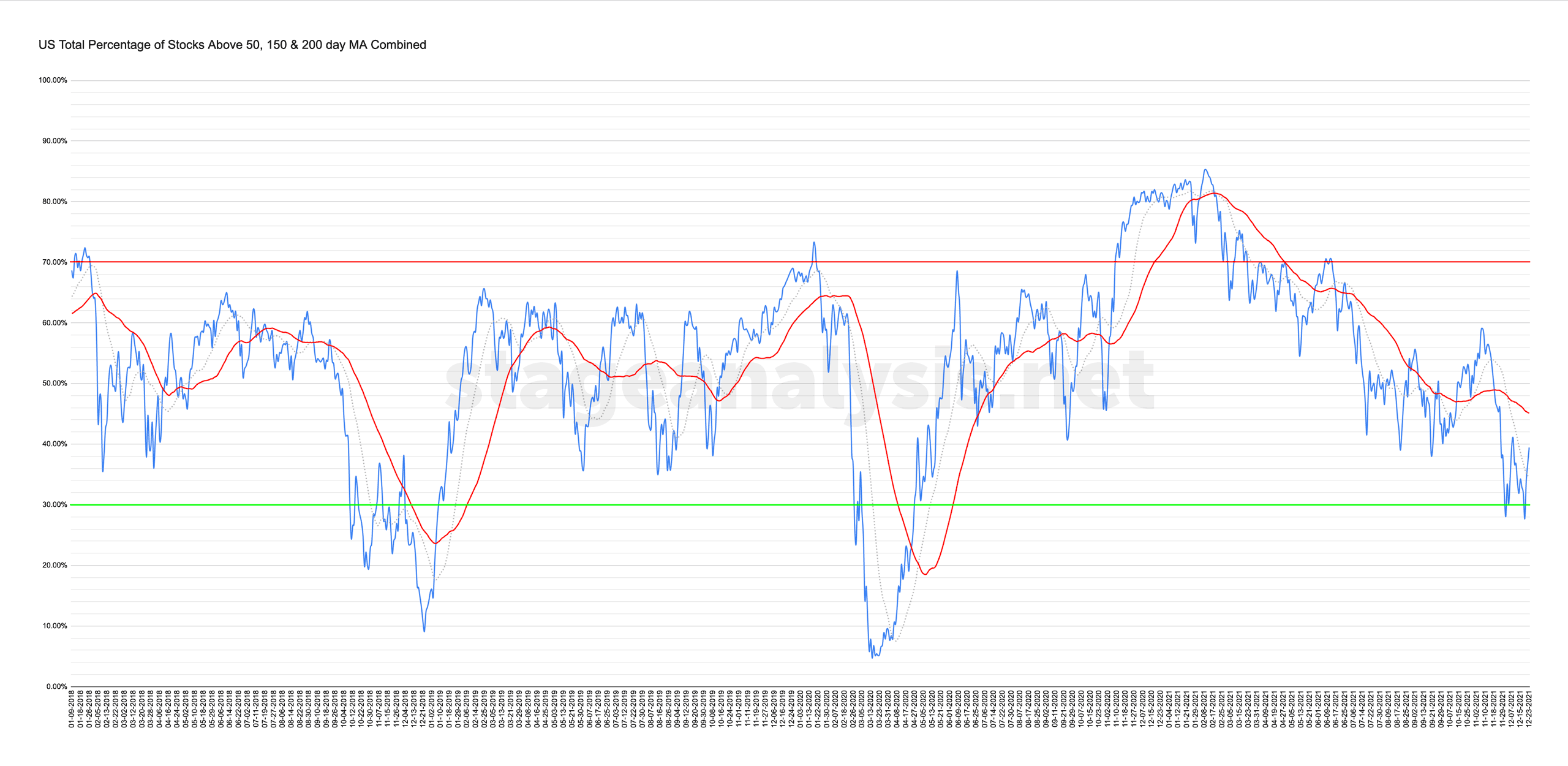 US Total % Stocks Above their 50 Day, 150 Day & 200 Day Moving Averages Combined