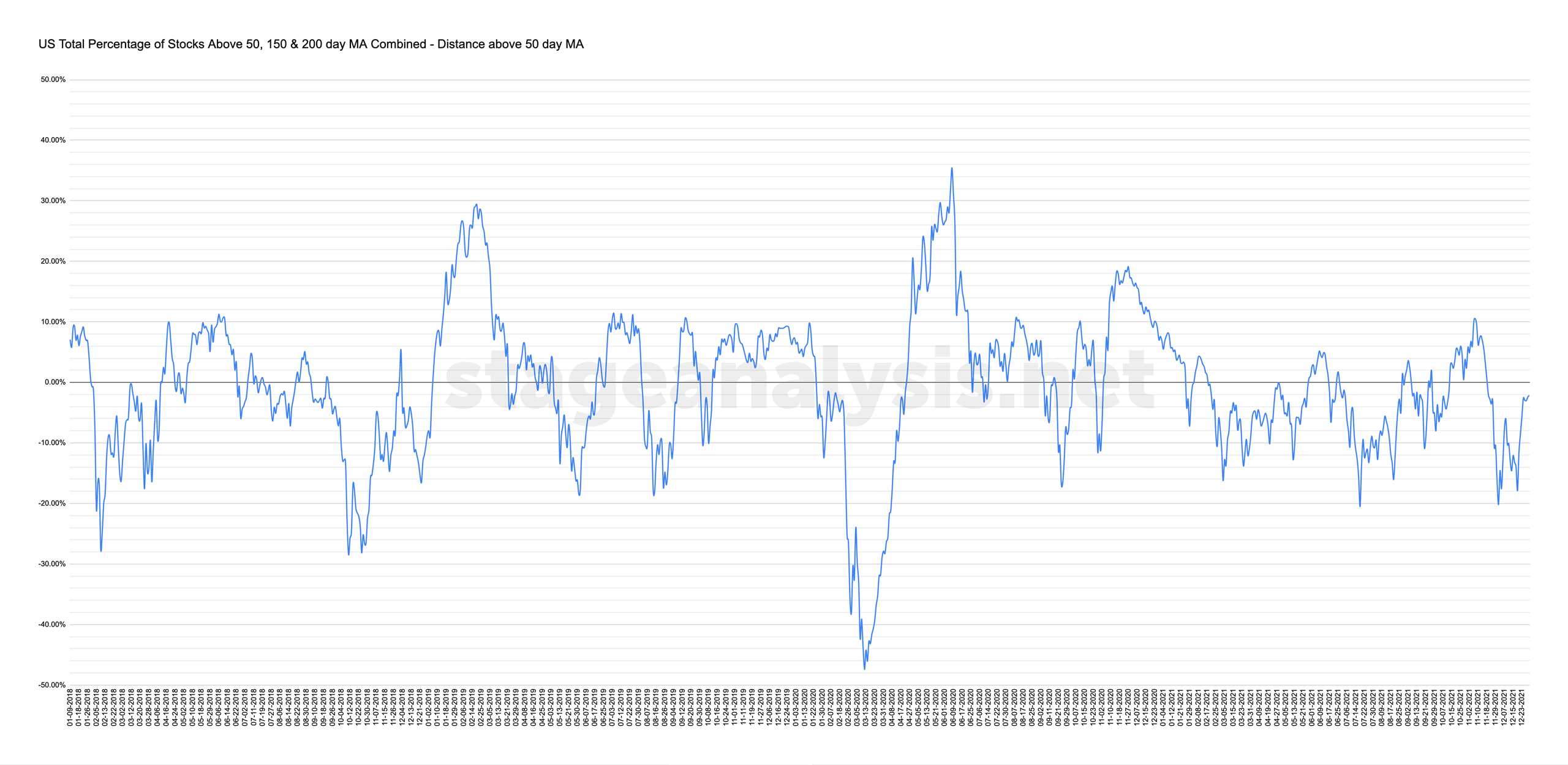 US Total % Stocks Above their 50 Day, 150 Day & 200 Day Moving Averages Combined