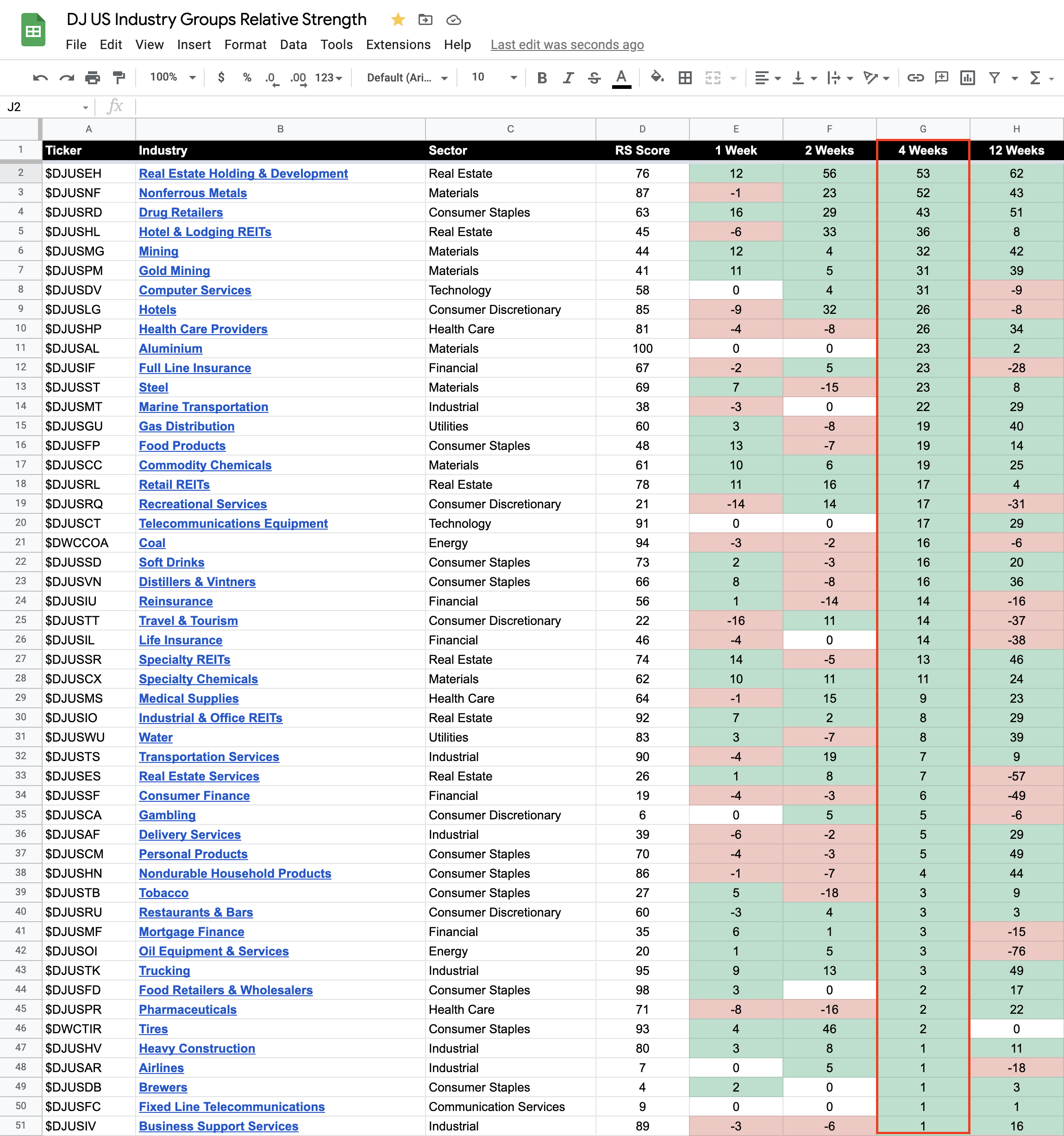 104 Dow Jones Industry Groups sorted by Relative Strength
