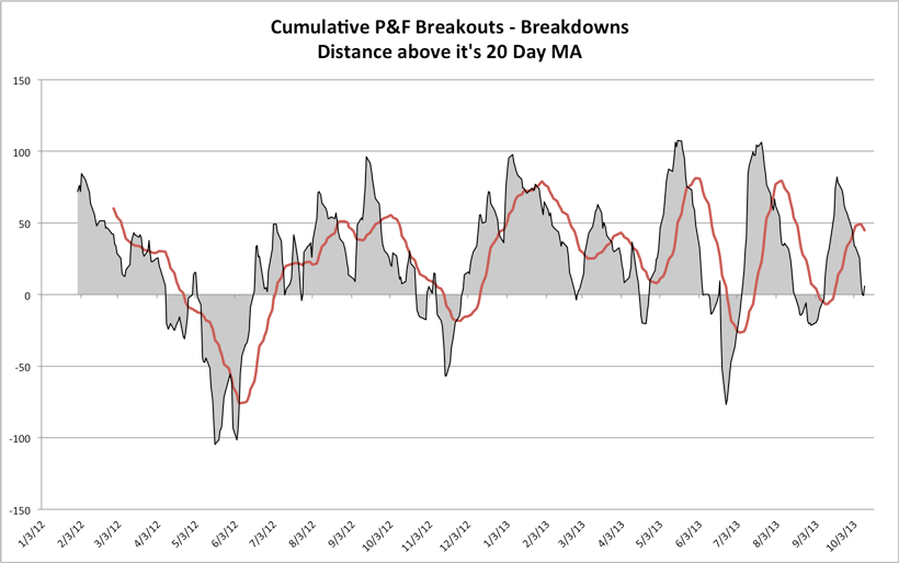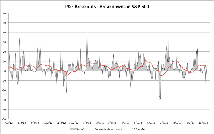 S&P 500 Cumulative P&F Breakouts - Breakdowns