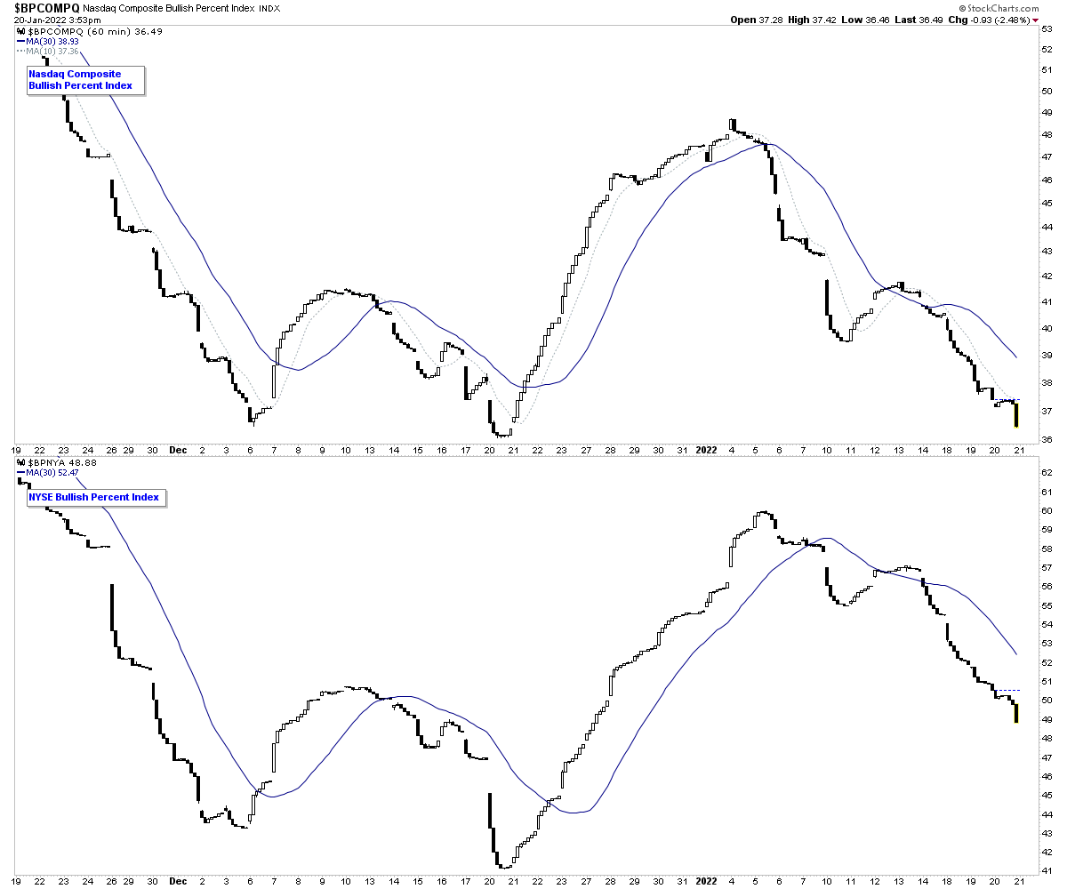 Nasdaq and NYSE Bullish Percent Index - 1 hour chart