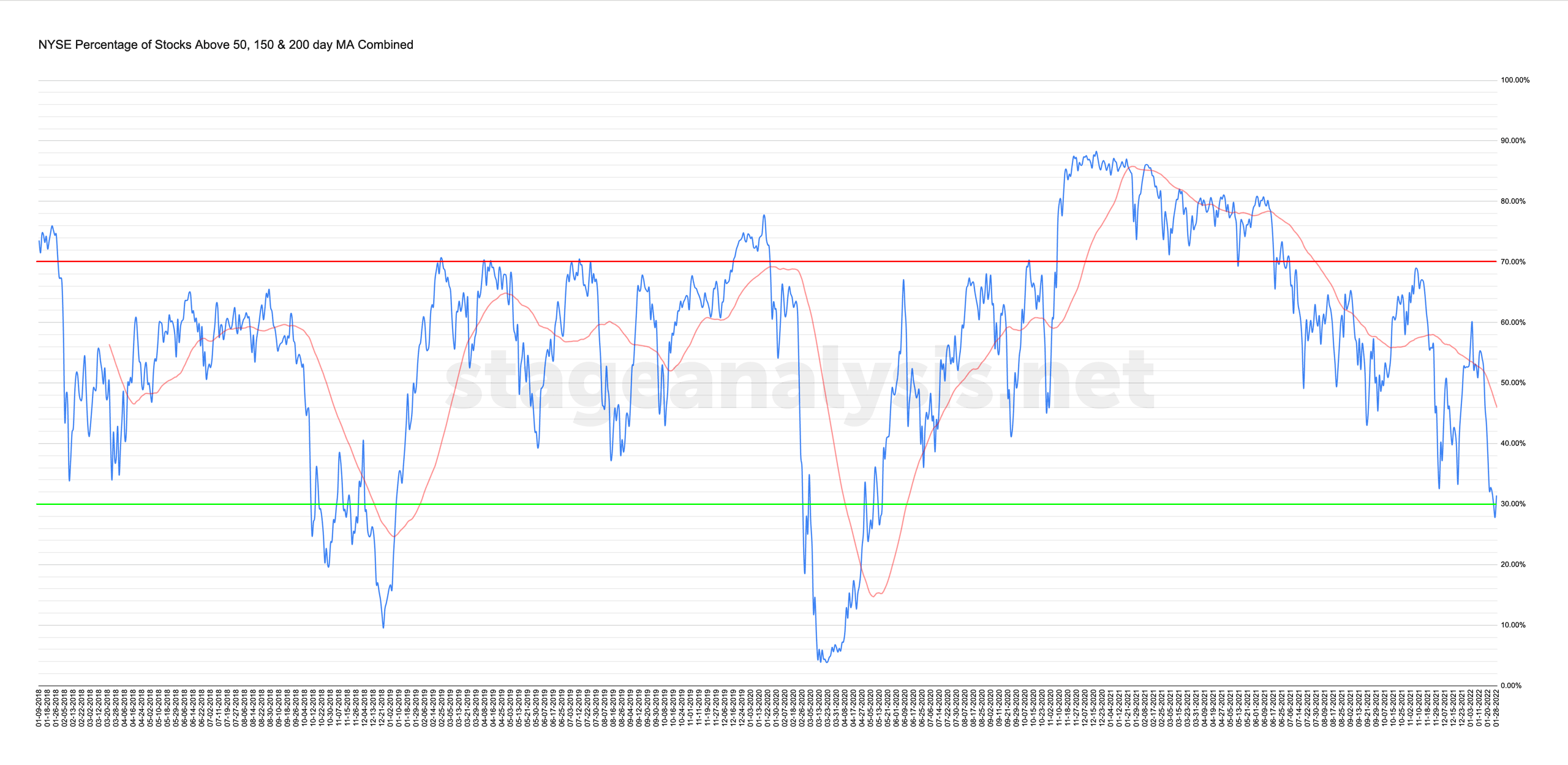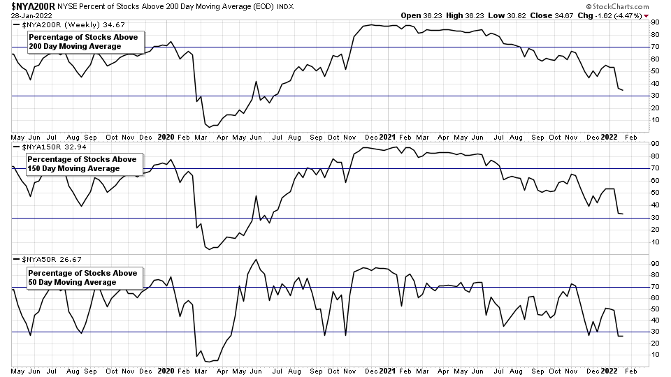 NYSE Total % Stocks Above their 50 Day, 150 Day & 200 Day Moving Averages Combined