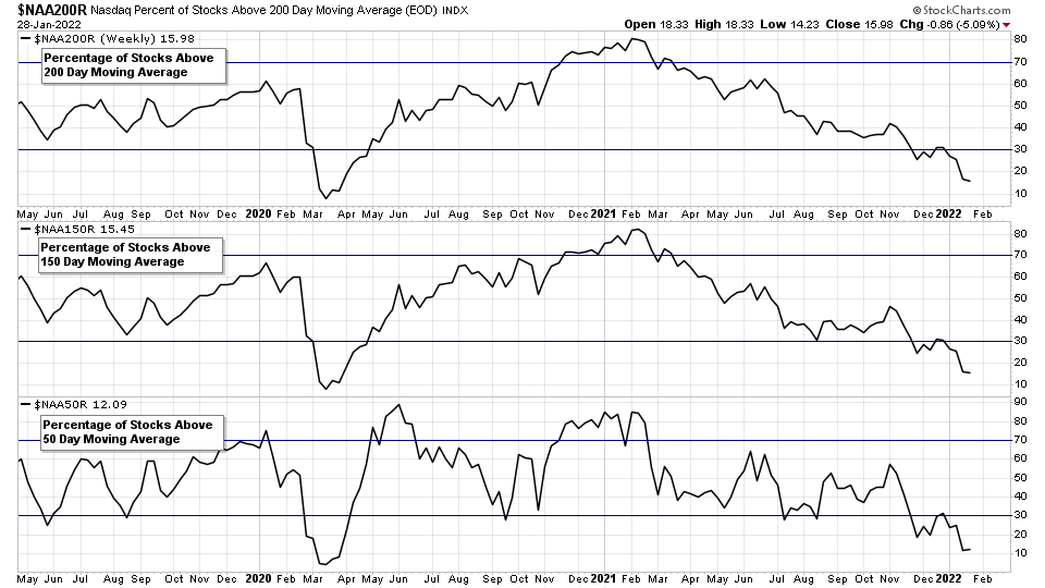 Nasdaq Percentage of Stocks Above their 50 Day, 150 Day & 200 Day Moving Averages