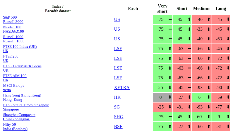 All weak apart, for some reason Shanghi? But some very short term strength in nearly all.