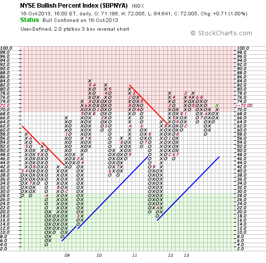 Yesterday saw a breakout in the NYSE Bullish Percent Index $BPNYA for the first time in many months, and so moves it back to offense and Bull Confirmed status in the upper range.